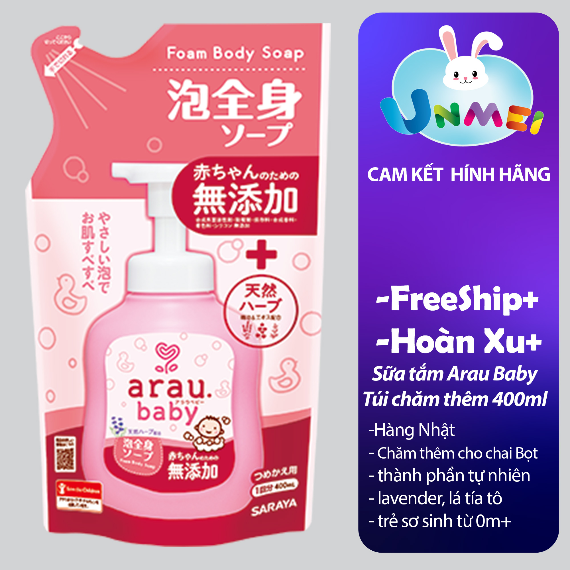 Bọt Tắm Gội Thảo Mộc Arau Baby Túi Hồng 400ml - SNBLưu ý: sản phẩm có thể thay đổi mẫu mã tùy từng năm nhập hàng. Unmei luôn cam kết chất lượng sản phẩm nên khách hàng yên tâm.