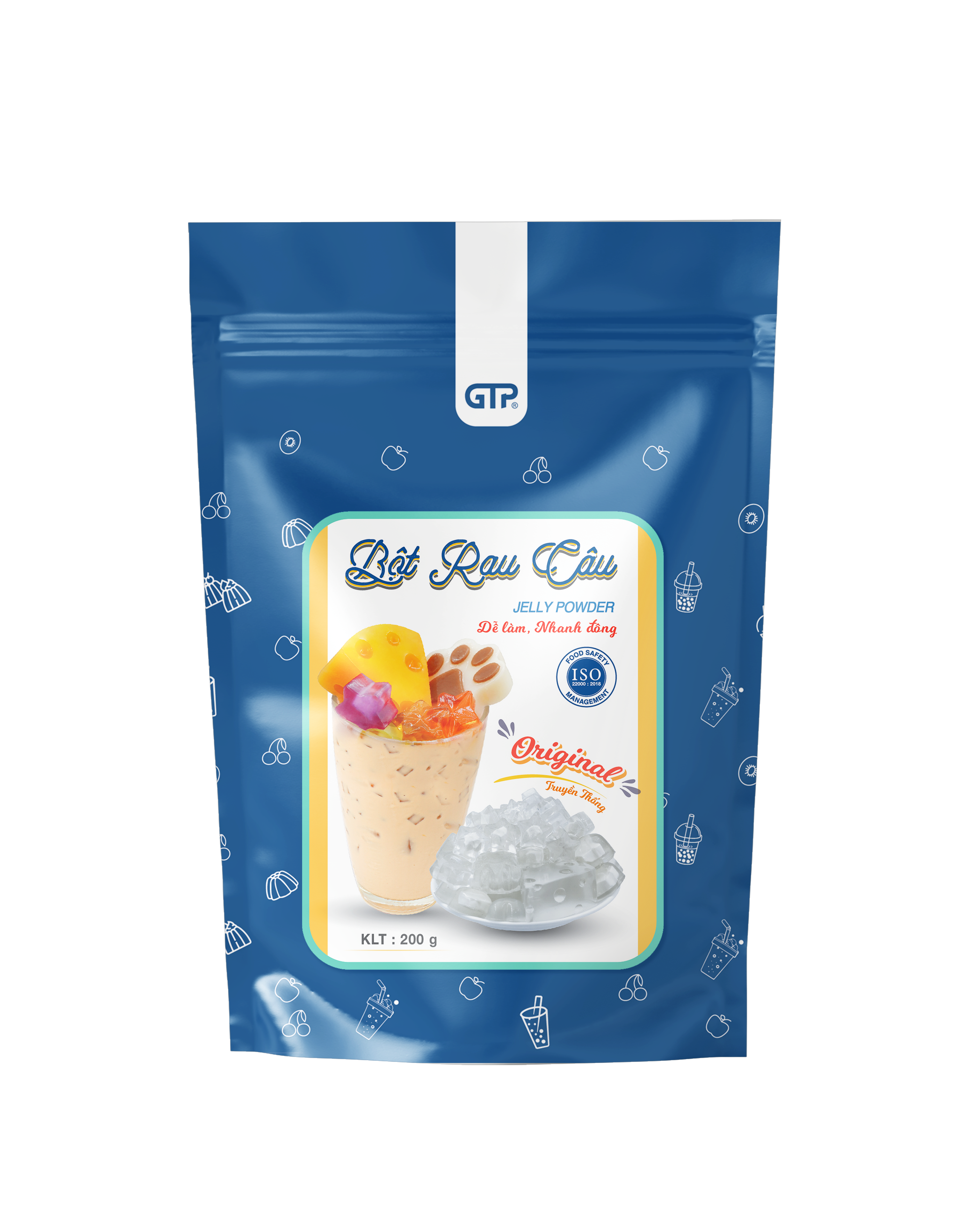 Bột Jelly (Bột rau câu) GTP được sản xuất theo công thức đặc biệt cho thành phẩm có độ giòn, ngọt thanh và độ dai vừa phải rất thích hợp để làm các loại thạch hay chế biến trực tiếp thành thạch jelly cho cả nhà thưởng thức. Cùng với bề dày phát triển của mình, công ty đã nghiên cứu ra nhiều hương vị để bạn tha hồ lựa chọn: truyền thống, sô cô la, khoai môn, dâu, lá dứa, cà phê, vải, đào... Lựa chọn sản phẩm của Gia Thịnh Phát nói chung và bột jelly nói riêng là lựa chọn an tâm cho sức khỏe của cả nhà.