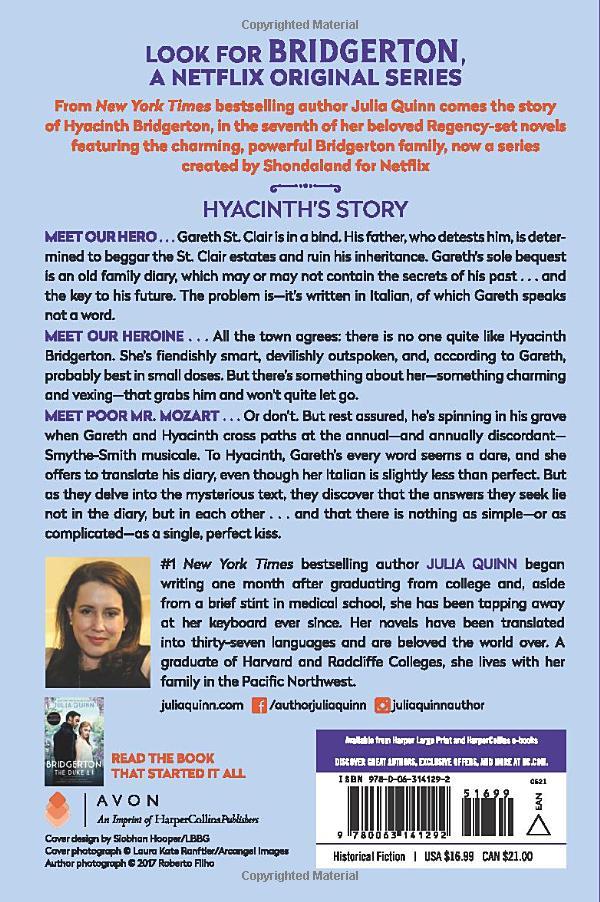 From #1 New York Times bestselling author Julia Quinn comes the story of Hyacinth Bridgerton, in the seventh of her beloved Regency-set novels featuring the charming, powerful Bridgerton family, now a series created by Shondaland for Netflix.