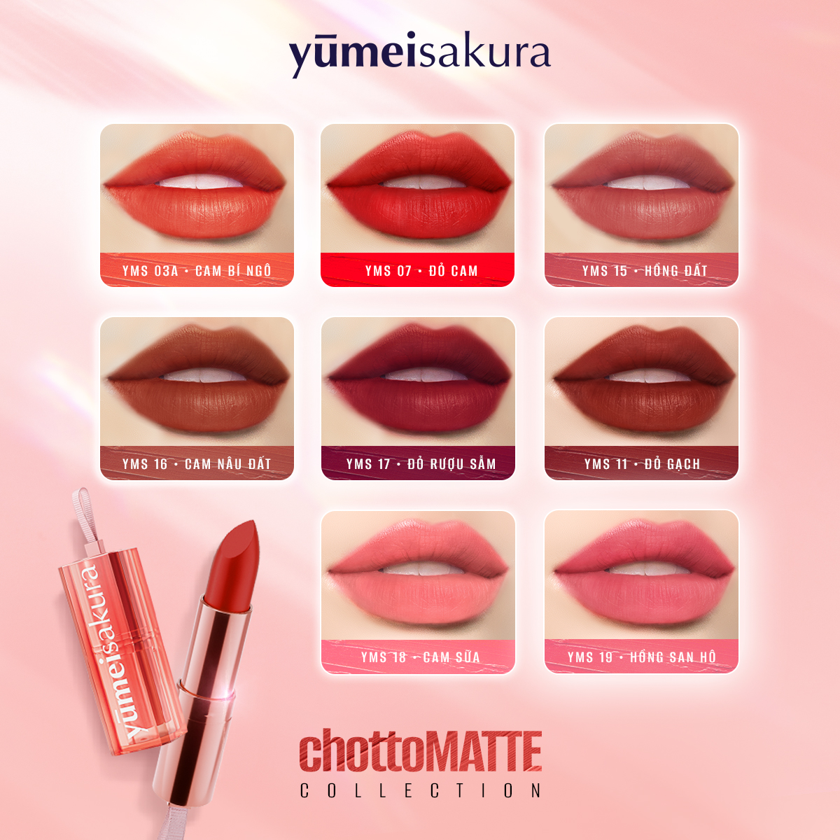 Tháng 05/2023, Yumeisakura chính thức chào đón thêm 3 màu son mới “quen mà lạ, lạ mà quen” vào bảng màu đa sắc son ChottoMATTE.