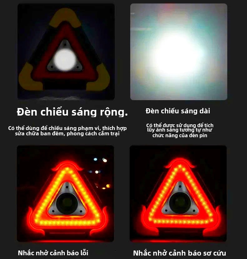 Thông số kỹ thuật Đèn Cảnh Báo Tam Giác SOS LED COB Pin 6400mAh Sạc Năng Lượng Mặt Trời Cho Xe Đường Dài Tàu Thuyền Biển Báo Công Trình