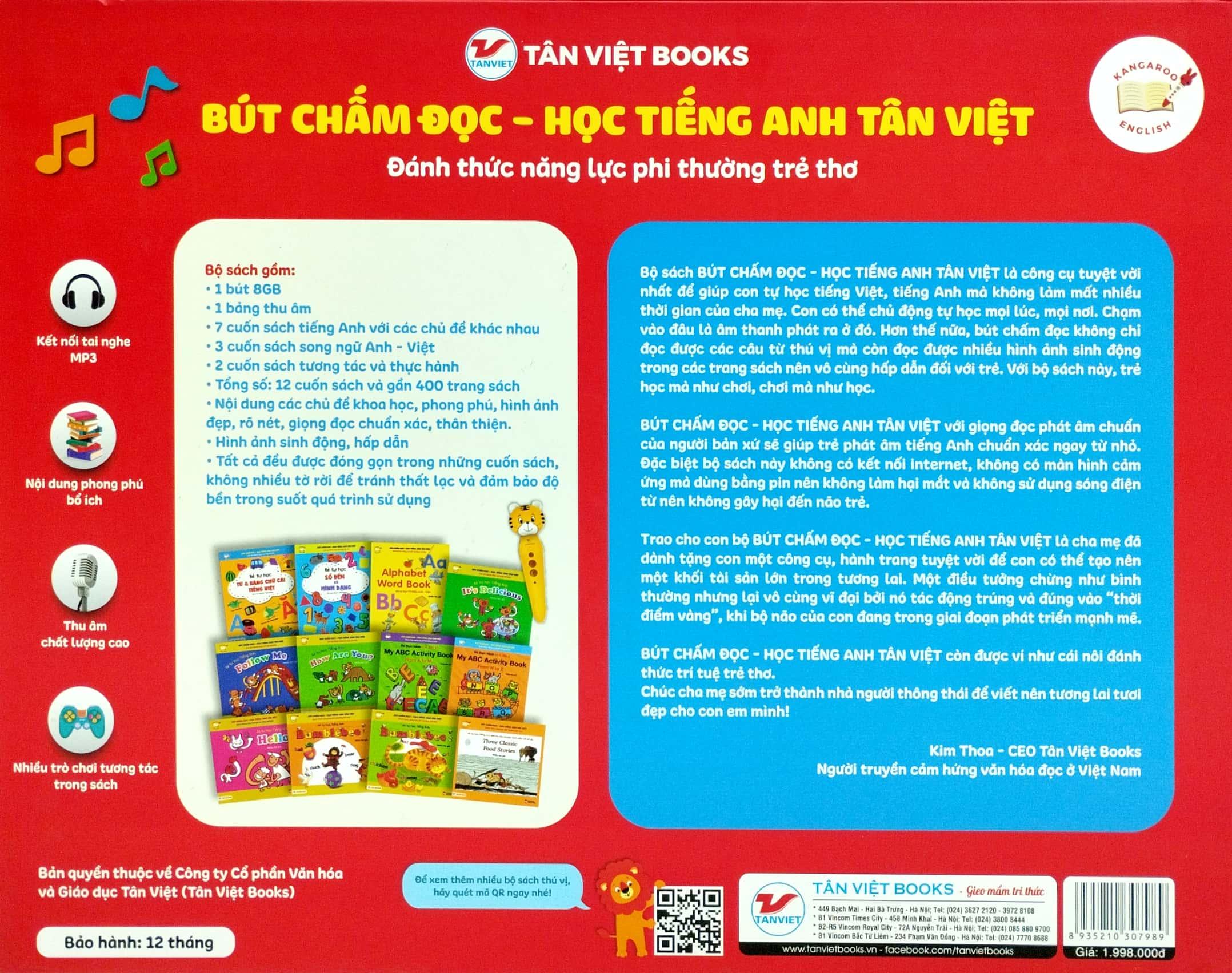 Trao cho con bộ BÚT CHẤM ĐỌC - HỌC TIẾNG ANH TÂN VIỆT là cha mẹ đã dành tặng con một công cụ, hành trang tuyệt vời để con có thể tạo nên một khối tài sản lớn trong tương lai. Một điều tưởng chừng như bình thường nhưng lại vô cùng vĩ đại bởi nó tác động trúng và đúng vào ""thời điểm vàng”, khi bộ não của con đang trong giai đoạn phát triển mạnh mẽ.
