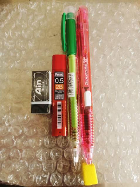 Bút chì bấm có nút bấm bên hông loại này, tiện dụng và rất thích, nhớ mua ruột chì 0,5 độ đậm 2B cũng của pentel thì xài ngon lành. Tất nhiên là dùng loại bút chì bấm này quá trình sử dụng cần giữ gìn cẩn thận, đừng để rơi cắm đầu ngòi xuống đất, cong đầu ngòi là coi như xong.