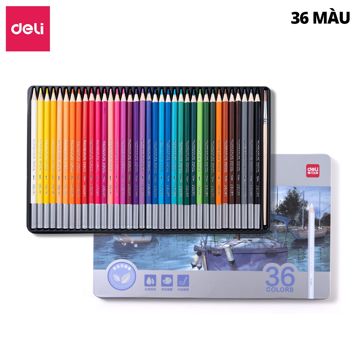 Tên sản phẩm: Bút chì màu nước hộp thiếc Deli