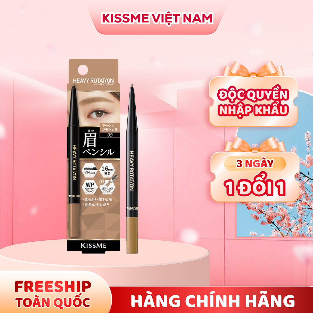 Bút Chì Sáp Kẻ Lông Mày Lõi Sáp Chống Trôi Màu Sắc Tự Nhiên Màu Nâu Tro #03 Kissme Heavy Rotation Eyebrow Pencil 0.09 G