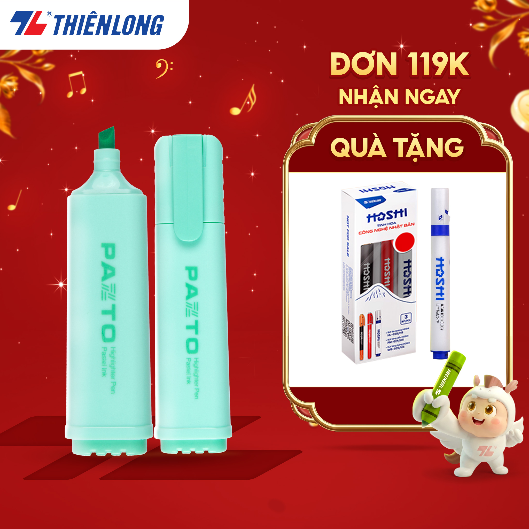 Thông số kỹ thuật Bút dạ quang màu Pastel Thiên Long Flexoffice Pazto FO-HL009/VN - Bút dạ quang rửa được - Không để lại vết khi Photocopy