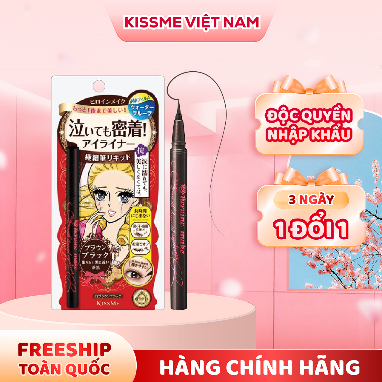 Bút Kẻ Mắt Nước Không Trôi Không Lem Nét Siêu Sắc Mãnh Kissme Heroine Make (3 Màu)