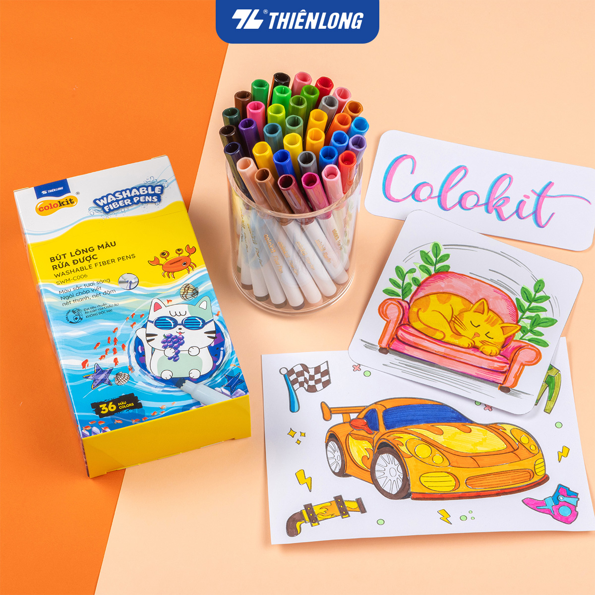 Thông số kỹ thuật Bút lông màu Fiber Pen 36 màu Thiên Long Colokit rửa được tiêu chuẩn Châu Âu an toàn sử dụng tô màu, vẽ tranh SWM-C006