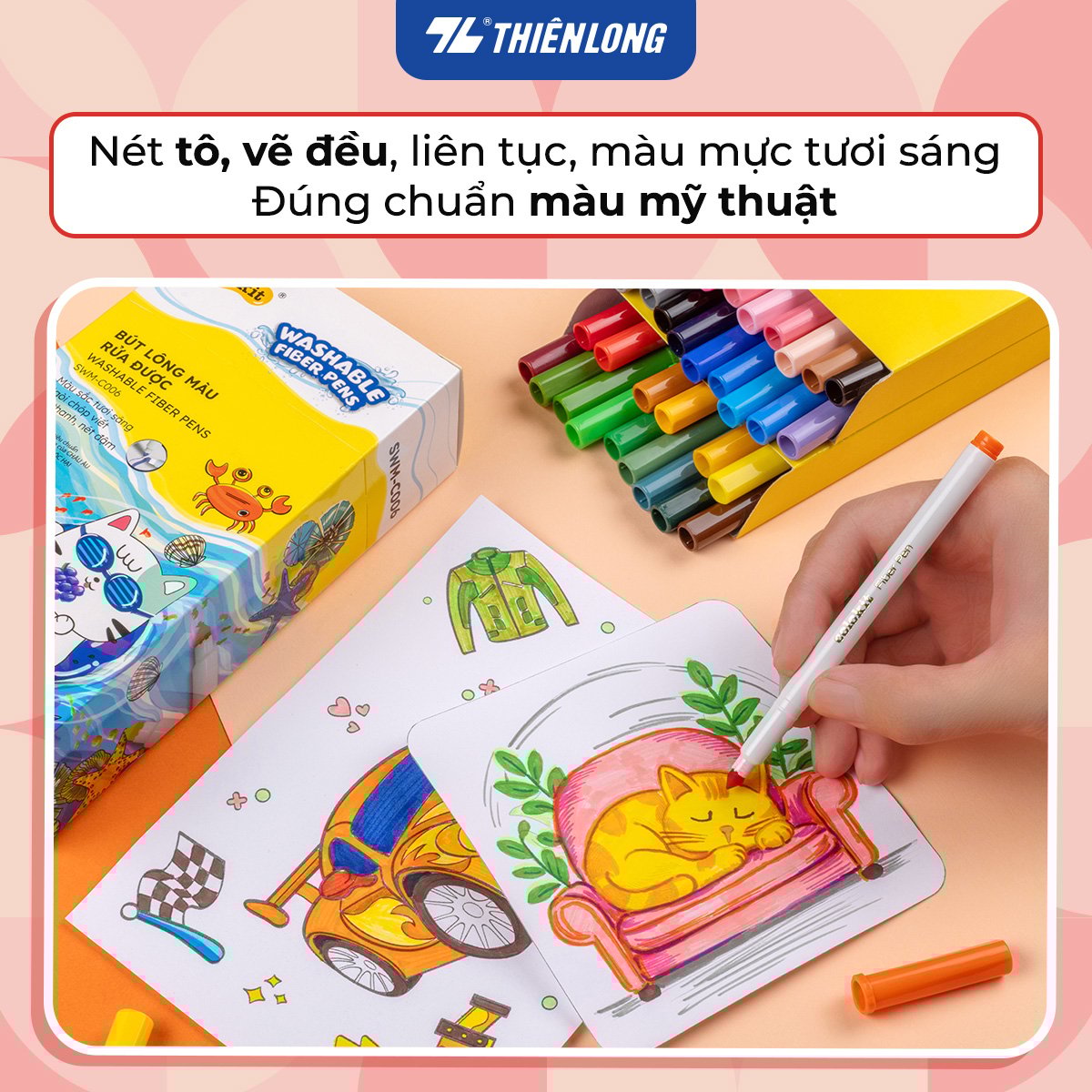 Thông số kỹ thuật Bút Lông Màu Thiên Long Fiber Pen Washable SWM-C006 - 36 Màu- Viết Được Nét Mảnh Nét To- Mực rửa được