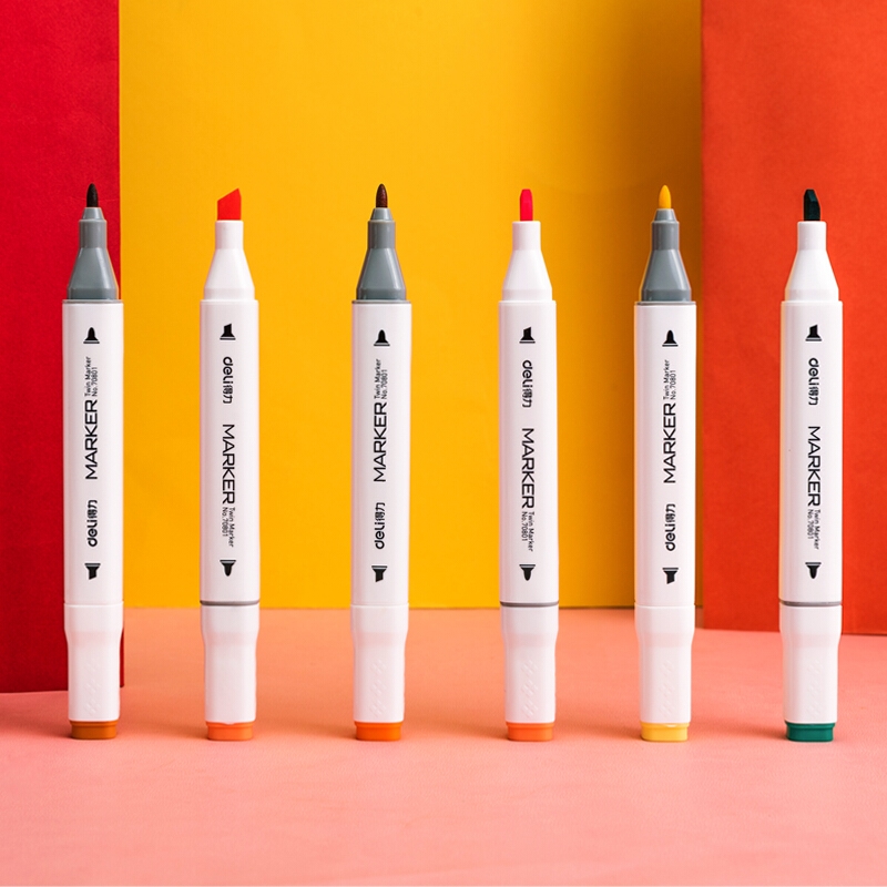 - Bút Màu Marker Hai Đầu Cao Cấp Deli 70801 - Một đầu chuyên dùng để vẽ, 1 đầu chuyên dùng để tô. Ngoài ra 2 đầu bút còn đem lại các hiệu ứng màu khác nhau giúp đáp ứng các phong cách vẽ khiến bức tranh của trẻ trở nên phong phú.