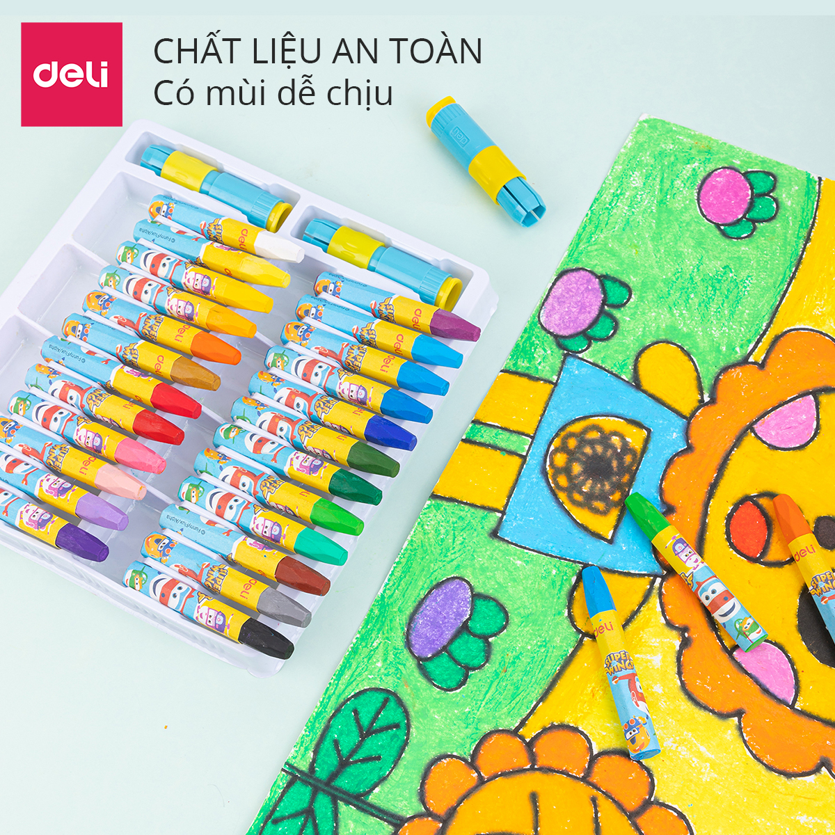 ️Bút sáp Deli có mực ra đều màu, phản quang tốt giúp màu sắc tươi sáng hơn, nhờ đó các tác phẩm của bé trở nên thật sinh động, bắt mắt.