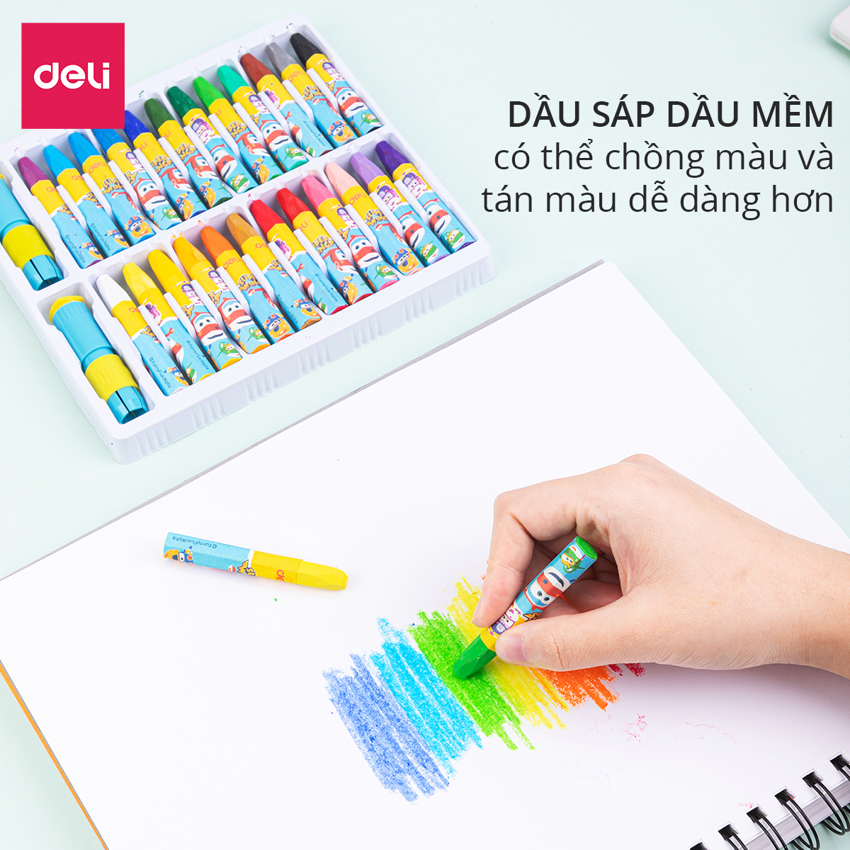 ️Bút sáp dầu Deli kết hợp với đội bay siêu đẳng Superwings cá tính, dành cho các bé học sinh thỏa sức sáng tạo.
