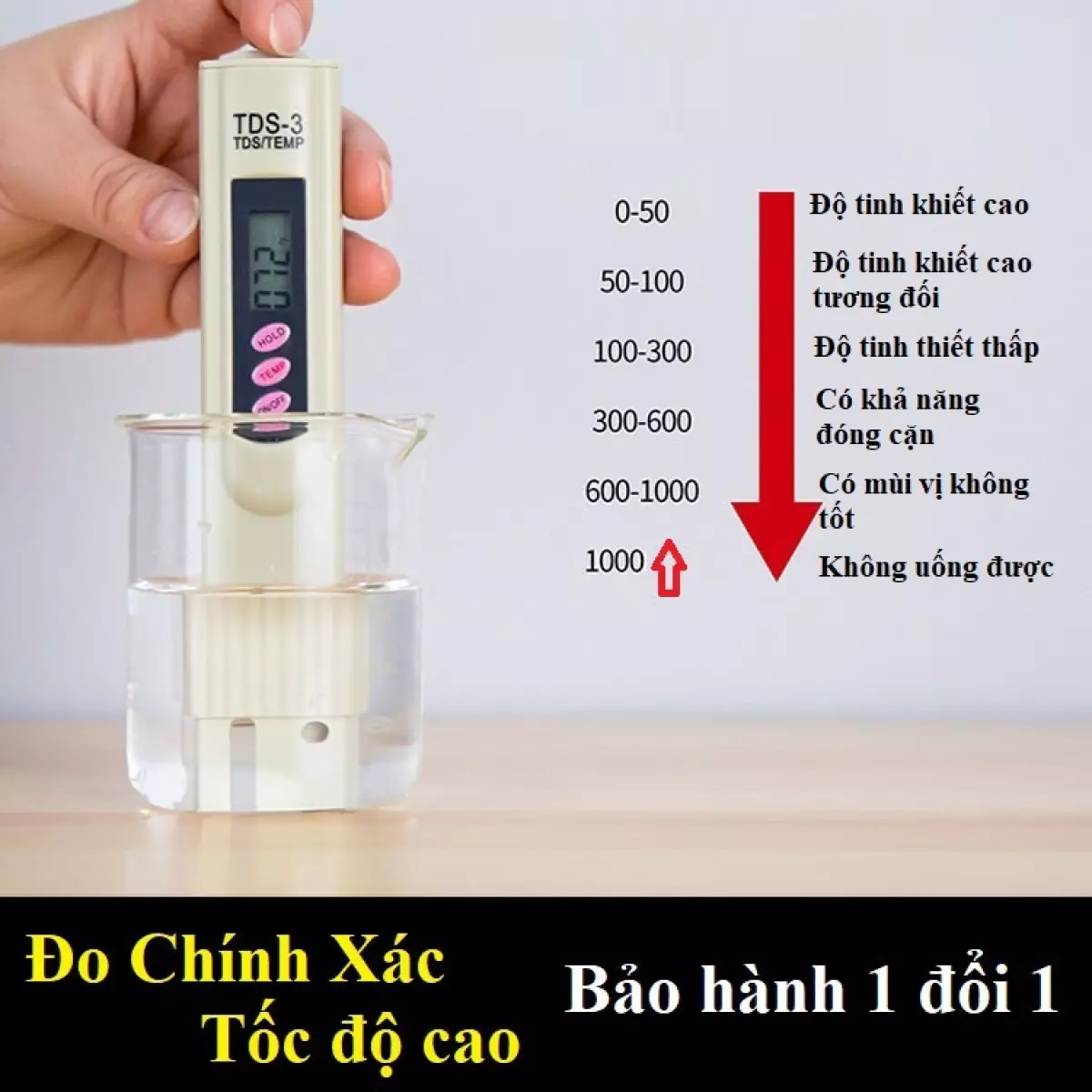 Bút thử nước sạch TDS – Meter Hold 3 được sử dụng để kiểm tra hiệu suất của bộ lọc nước , xác định xem nguồn nước sử dụng qua lọc đã đạt tiêu chuẩn hay chưa. Đặc biệt bút TDS có độ chính xác cao do bởi công nghệ vi xử lý tiên tiến