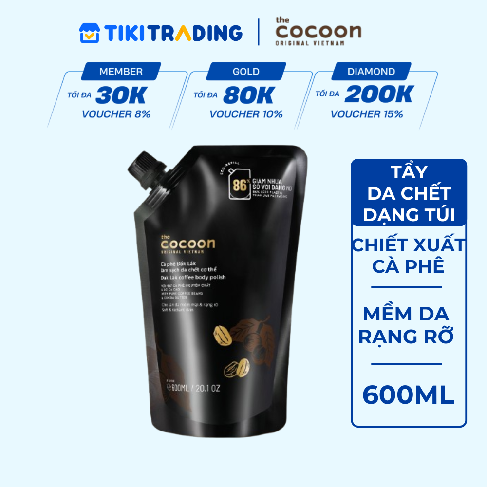 Thông số kỹ thuật Tẩy da chết cơ thể cà phê Dăk Lăk Cocoon - Túi refill 600ml