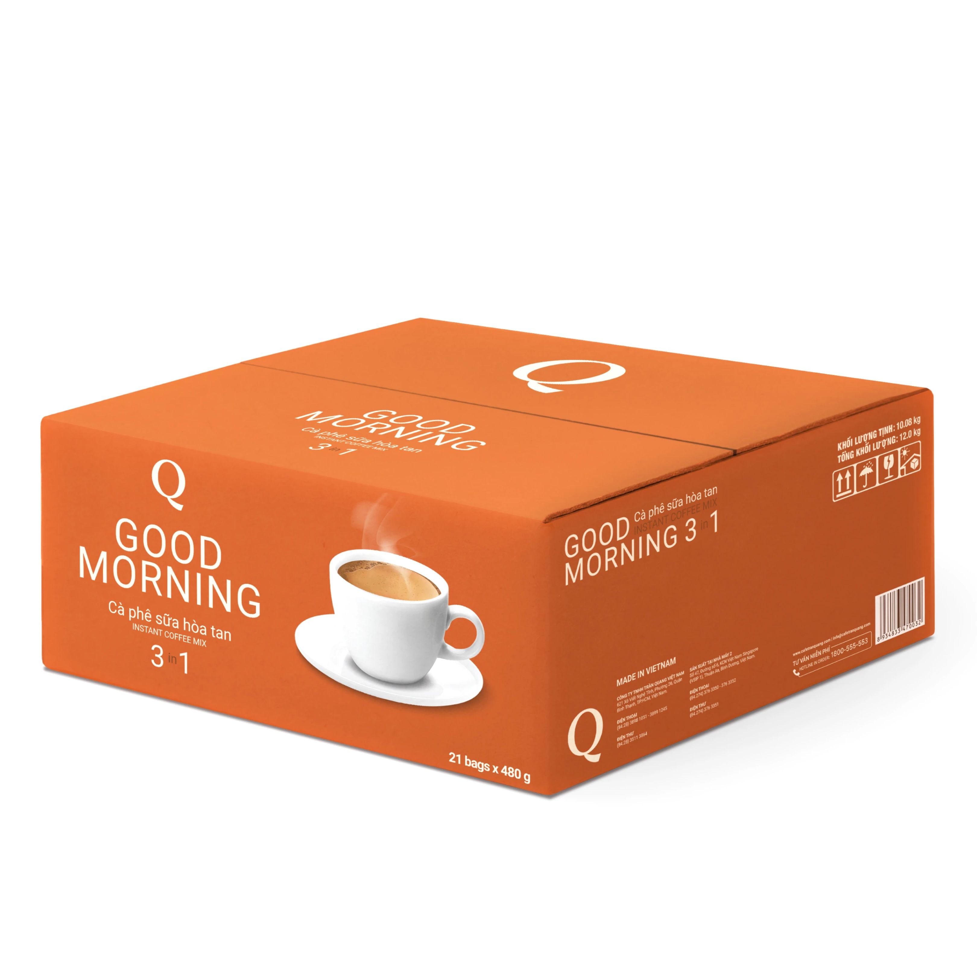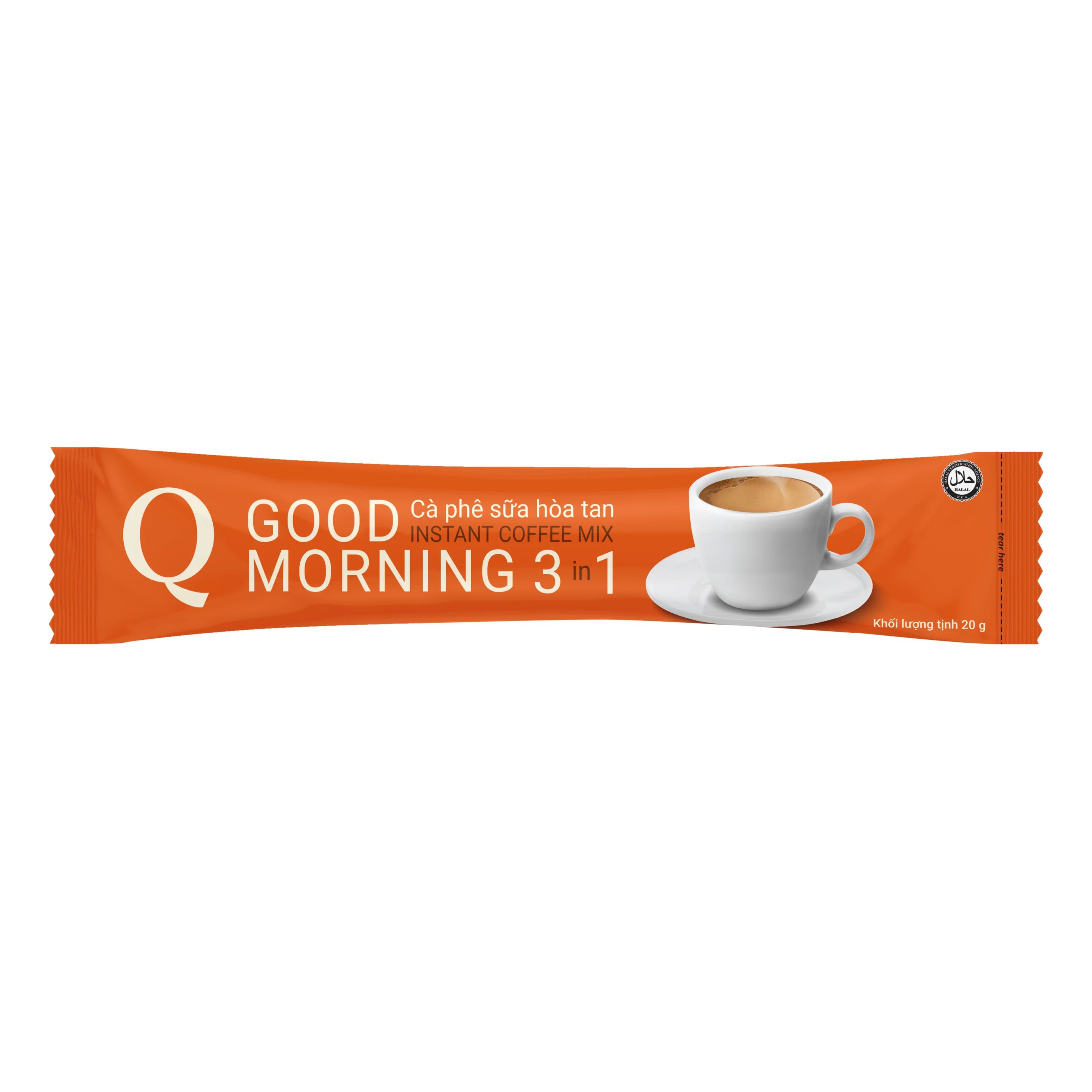 Hãy chuẩn bị buổi sáng hoàn tất với cà phê hòa tan 3in1 Q Express Good Morning. Làm từ nguyên liệu chọn lọc kỹ càng mang đến hương vị cà phê sữa béo ngọt dịu dàng. Dòng cà phê hòa tan 3in1 bán chạy nhất của Trần Quang, sản phẩm không thể thiếu trong gia đình bạn.