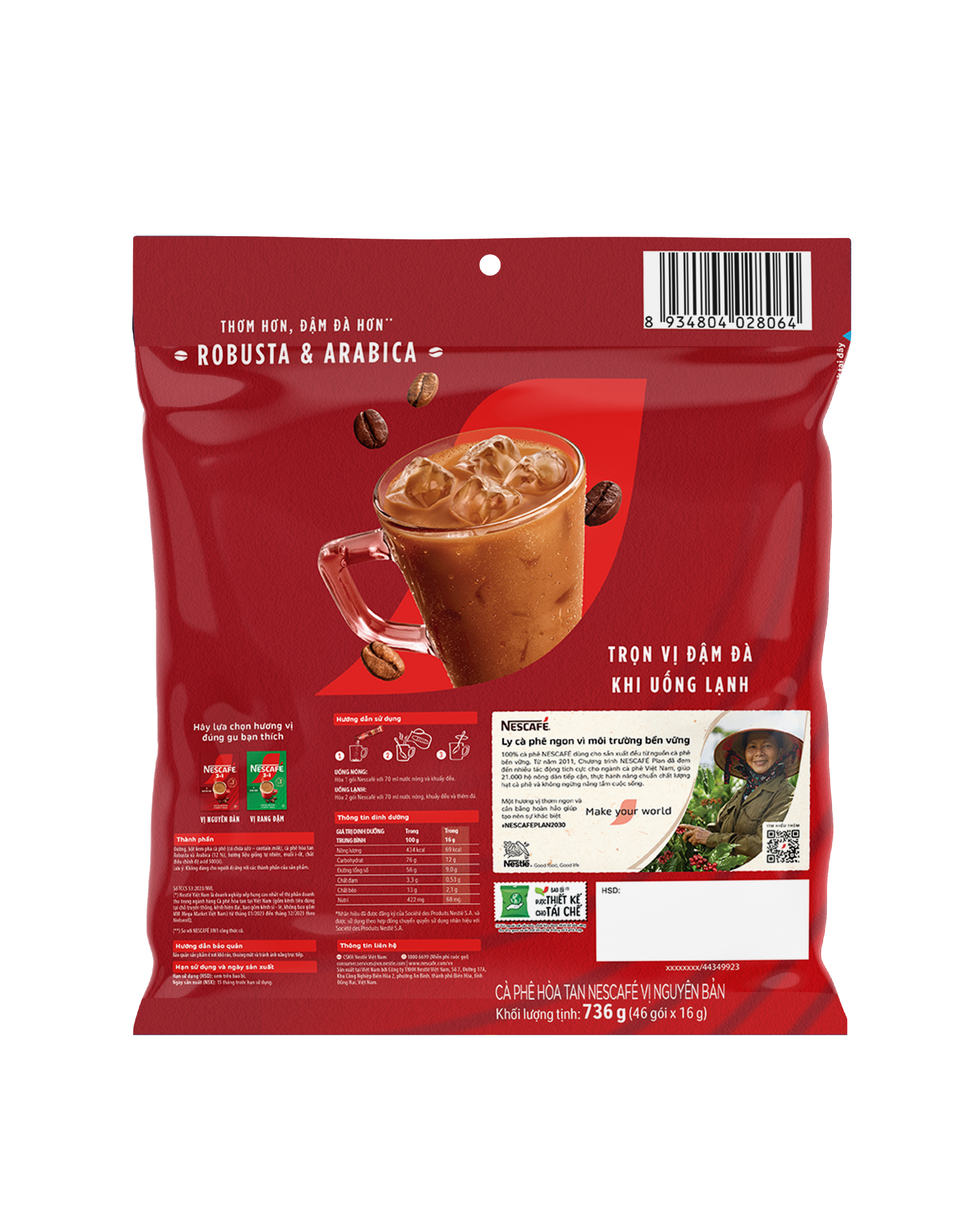 Thông số kỹ thuật [Tặng ly sứ cao cấp] Cà phê Hòa tan NESCAFÉ VỊ NGUYÊN BẢN 46 gói Đậm Thơm Hoàn Hảo