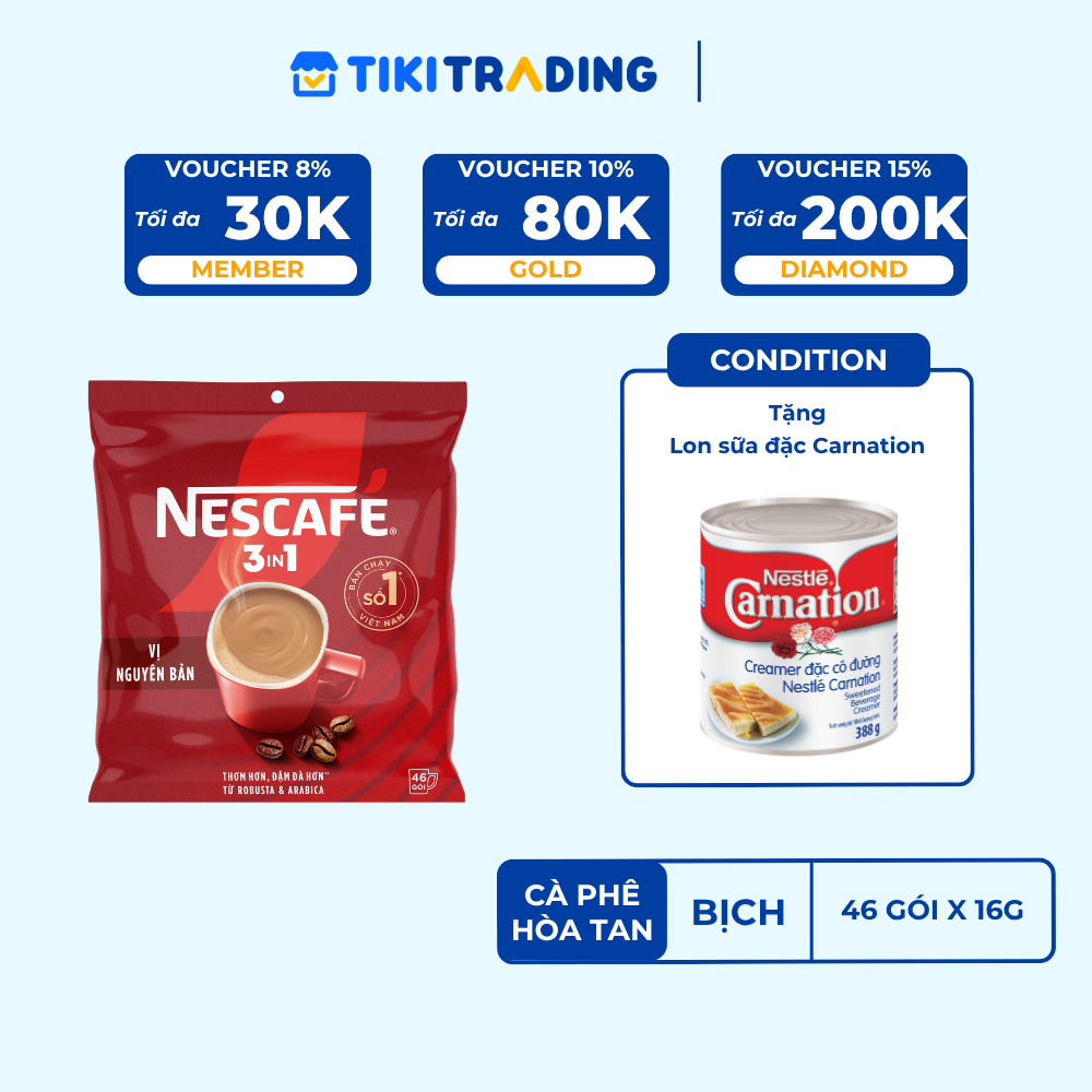 Thông số kỹ thuật [ Tặng 1 LON SỮA ĐẶC] Cà phê Hòa tan NESCAFÉ VỊ NGUYÊN BẢN 46 gói Đậm Thơm Hoàn Hảo
