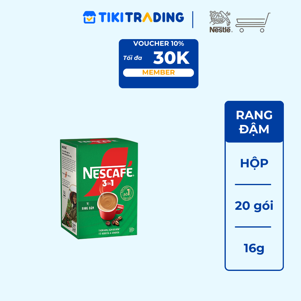 Thông số kỹ thuật Cà phê hoà tan NESCAFÉ 3IN1 VỊ RANG ĐẬM - công thức cải tiến (hộp 20 gói x 16g)