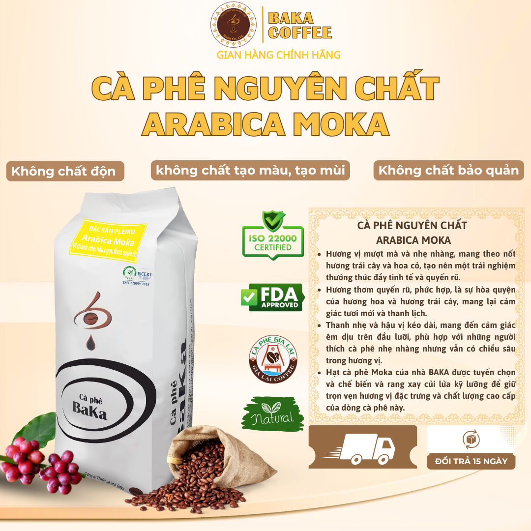 Thông số kỹ thuật Cà Phê Nguyên Chất Baka - Moka (Bì 500g)
