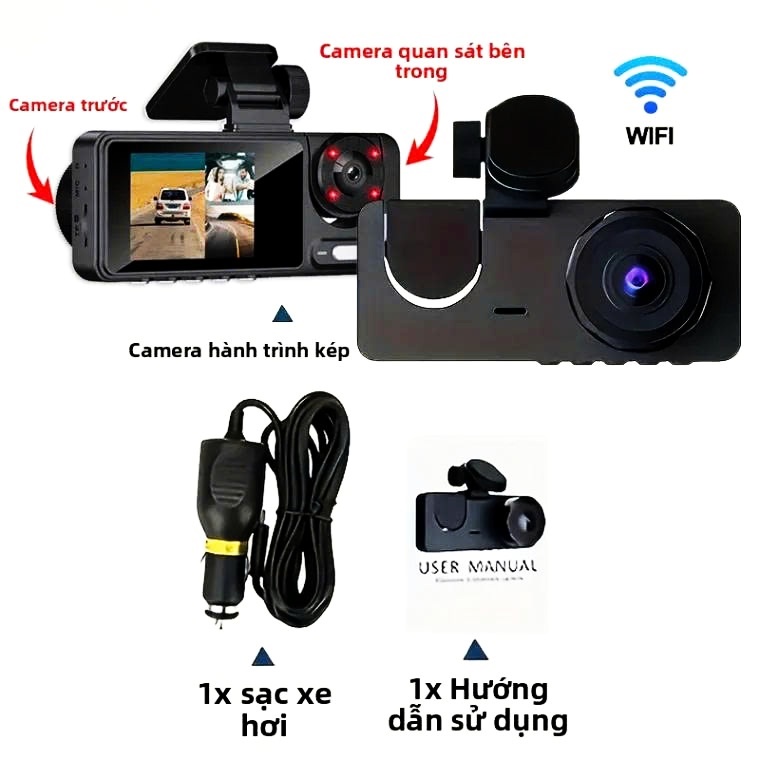 Thông số kỹ thuật Camera Hành Trình Wifi 2 Mắt Màn Hình IPS 2.0 FHD 1080P 12MP 30fps IR/Mic Quay Chụp Rõ Nét Kết Nối Android/iOS