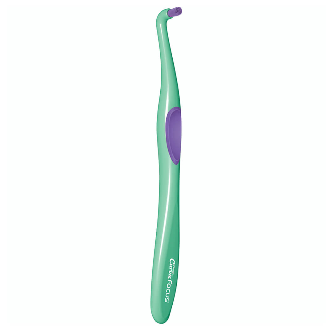 Bàn chải góc Piksters với đầu chải nhọn tập trung, đầu bàn chải cong đặc biệt dễ dàng làm sạch và vệ sinh các khu vực răng phía trong, chân implant, mắc cài. Giusp làm sạch mảng bám mà không hề làm tổn thương nướu.