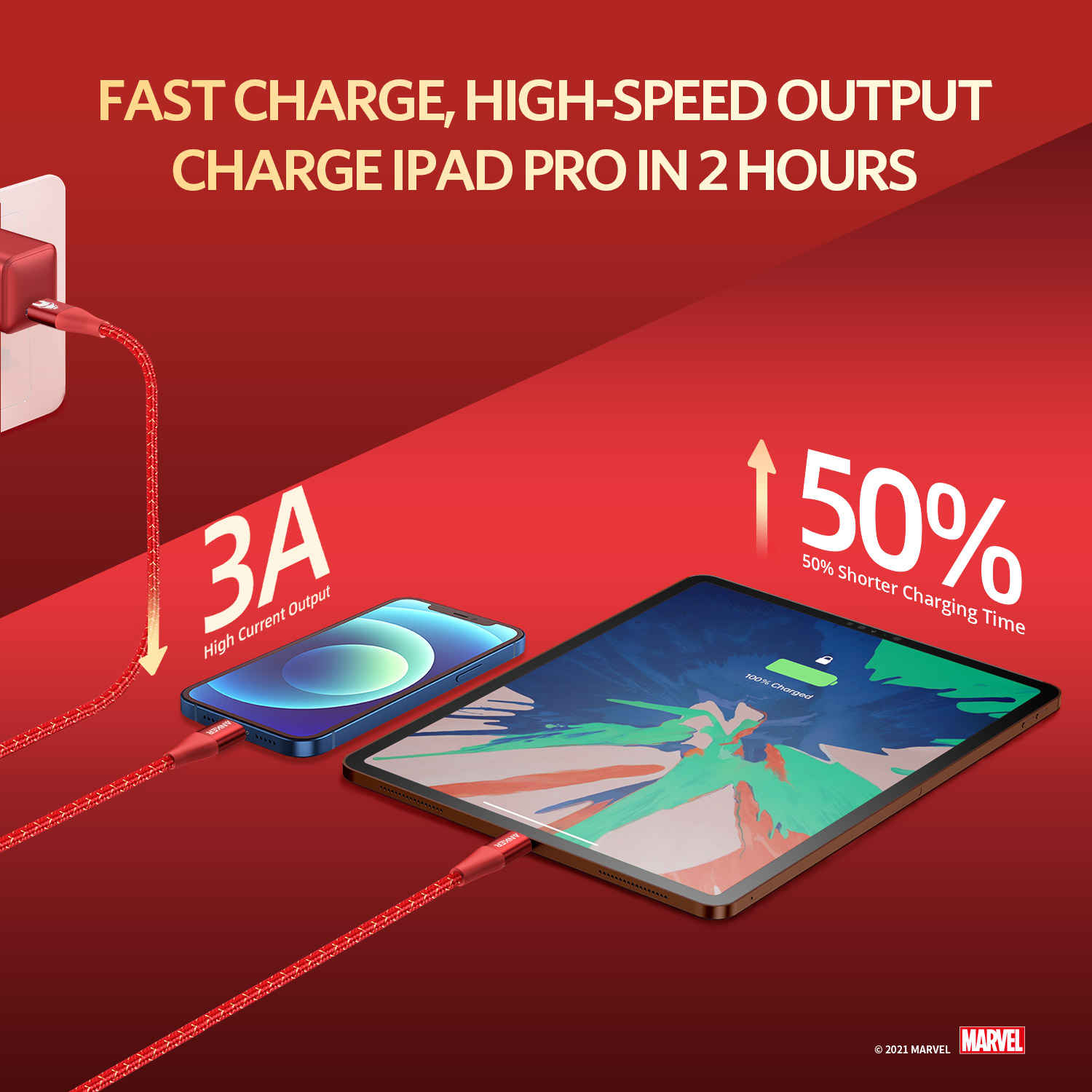 Cáp Sạc ANKER PowerLine+ II USB-C to iPhone - Phiên Bản Marvel - A9551 cung cấp tốc độ sạc nhanh nhất khi được kết nối bộ sạc hỗ trợ USB-C Power Delivery, cung cấp tốc độ sạc nhanh cho iPhone, iPad và các thiết bị hỗ trợ sạc nhanh khác.