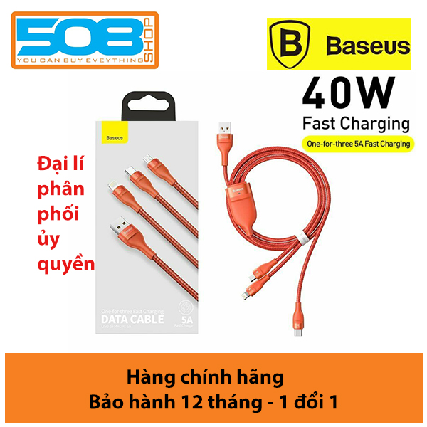 Cáp sạc nhanh 3 đầu Baseus Flash Series 3in1 (USB to Type C/ Lai-nin/ Micro, 5A/40W Quick Charging & Data Cable) - Bảo hành 12 tháng