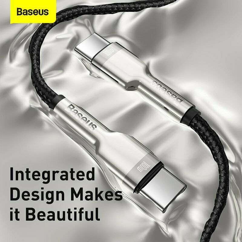 - Cáp sạc siêu nhanh 100W Baseus Cafule Series Metal Data Cable Type-C to Type-C (100W) là dòng Cafule Series Metal nên cáp cũng được chất liệu bằng nhôm ở cả 2 đầu cho sự cứng cáp và dễ dàng tản nhiệt trong quá trình sạc.