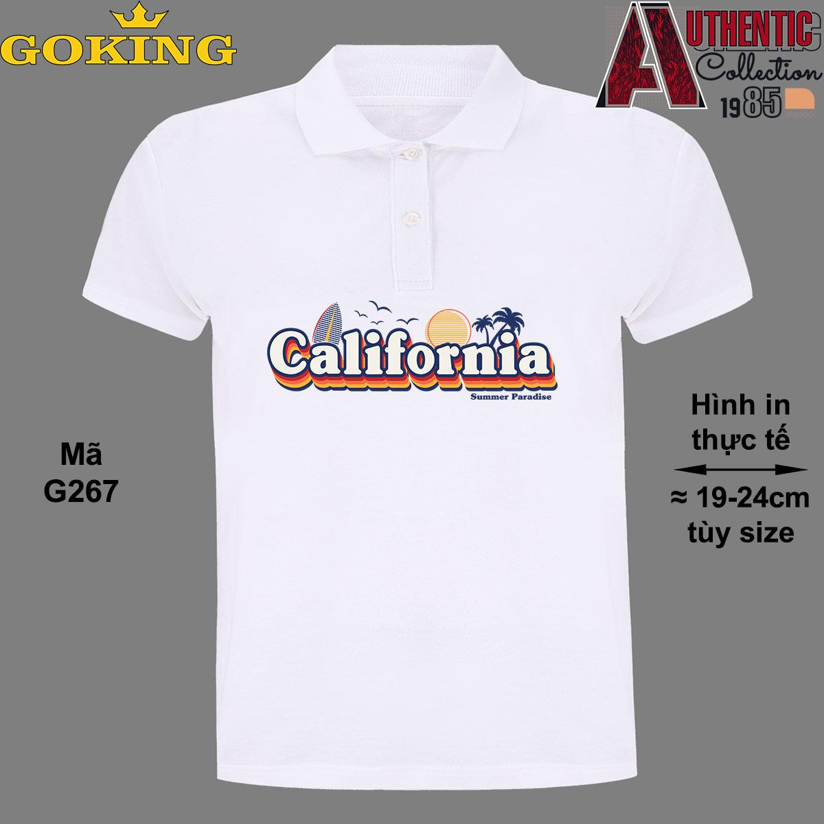 Thông số kỹ thuật Carlifornia, mã G267. Áo thun polo cổ trụ cho nam nữ, form unisex. Áo phông hàng hiệu Goking, quà tặng cao cấp cho gia đình, cặp đôi, doanh nghiệp