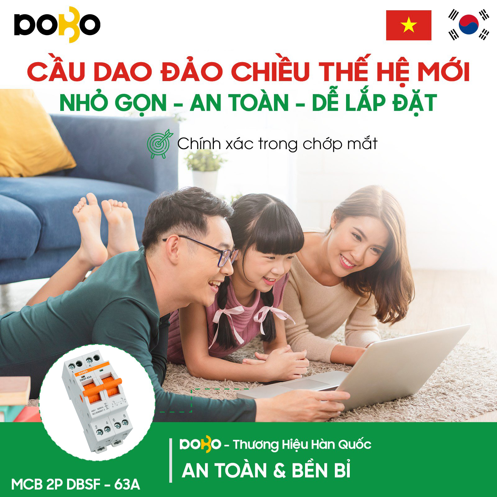 CB đảo chiều 2P 63A là: sản phẩm cầu dao đảo chiều dạng Aptomat công suất 2P 63A thương hiệu DoBo: