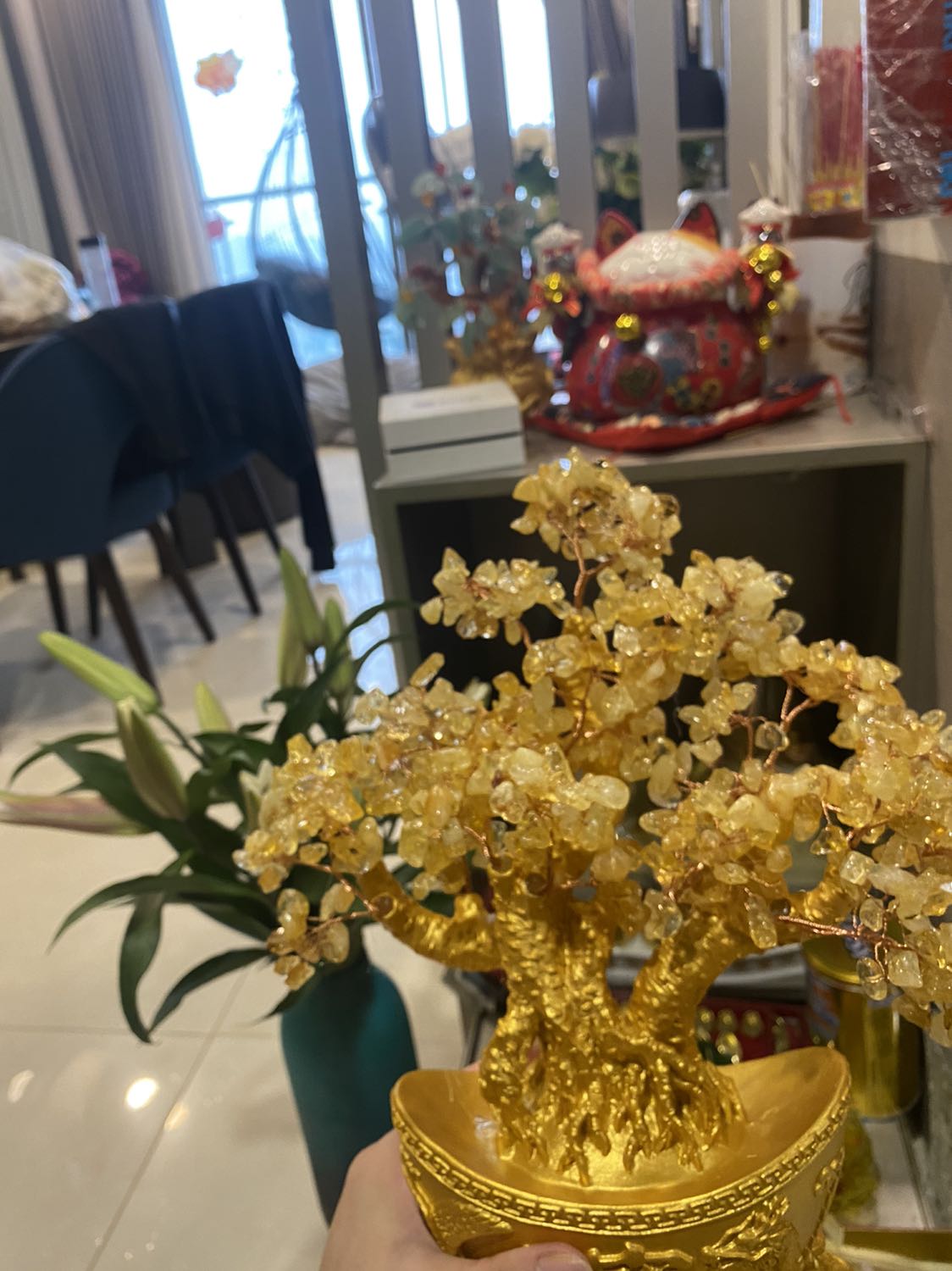 Thông số kỹ thuật Cây Tài Lộc phong thủy đá thạch anh vàng với đế hình thỏi vàng để bàn làm việc, bàn thờ thần tài - Cao 30 cm