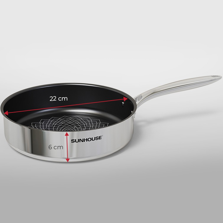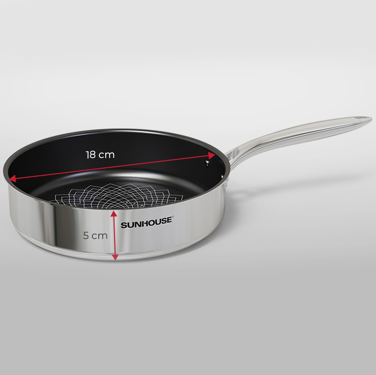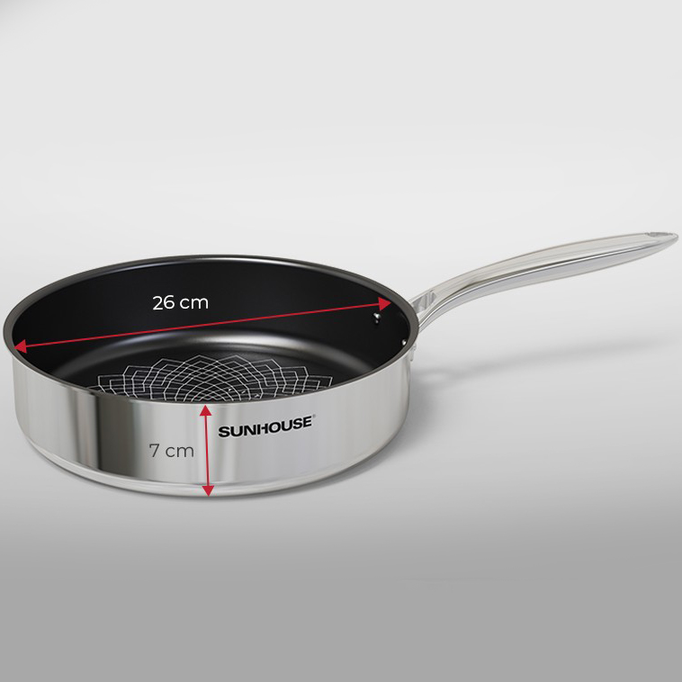 Thông số kỹ thuật Chảo Inox 3 lớp Ultra Titanium Sunhouse STIM - Dùng cho mọi loại bếp - Hàng chính hãng