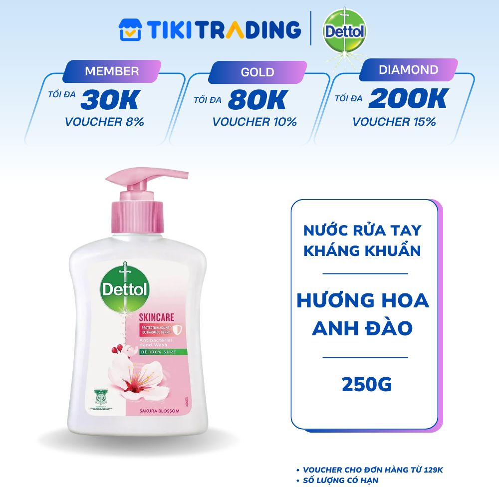 Thông số kỹ thuật Chai nước rửa tay Dettol kháng khuẩn dưỡng da - Chai 250g