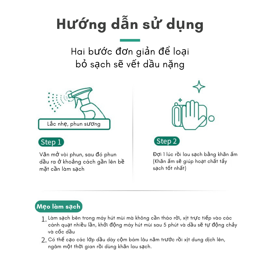 Thông số kỹ thuật Chai xịt tẩy dầu mỡ bám bẩn nặng Funu cao cấp, làm sạch bếp gas, máy hút mùi, tường bếp, mui xe, tường gạch