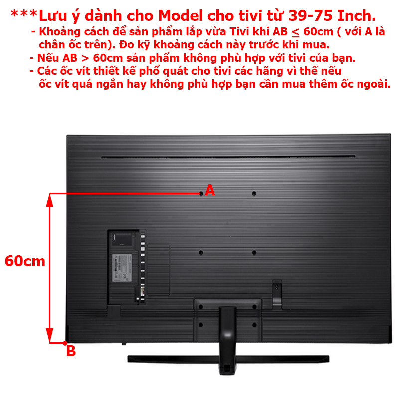Sản phẩm khá ổn. Sử dụng được cho TV Samsung 32 inches như hình, có code sản phẩm trong hình. Tuy nhiên ốc đi kèm hơi nhỏ hơn so với lỗ trên TV nên phải mua thêm bên ngoài.