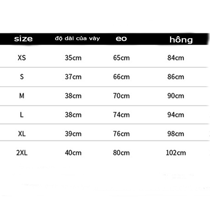 Lưu ý là váy eo cao nên vòng eo các bạn đo trên rốn mới chính xác, liên hệ shop để được tư vấn size chính xác nhé!