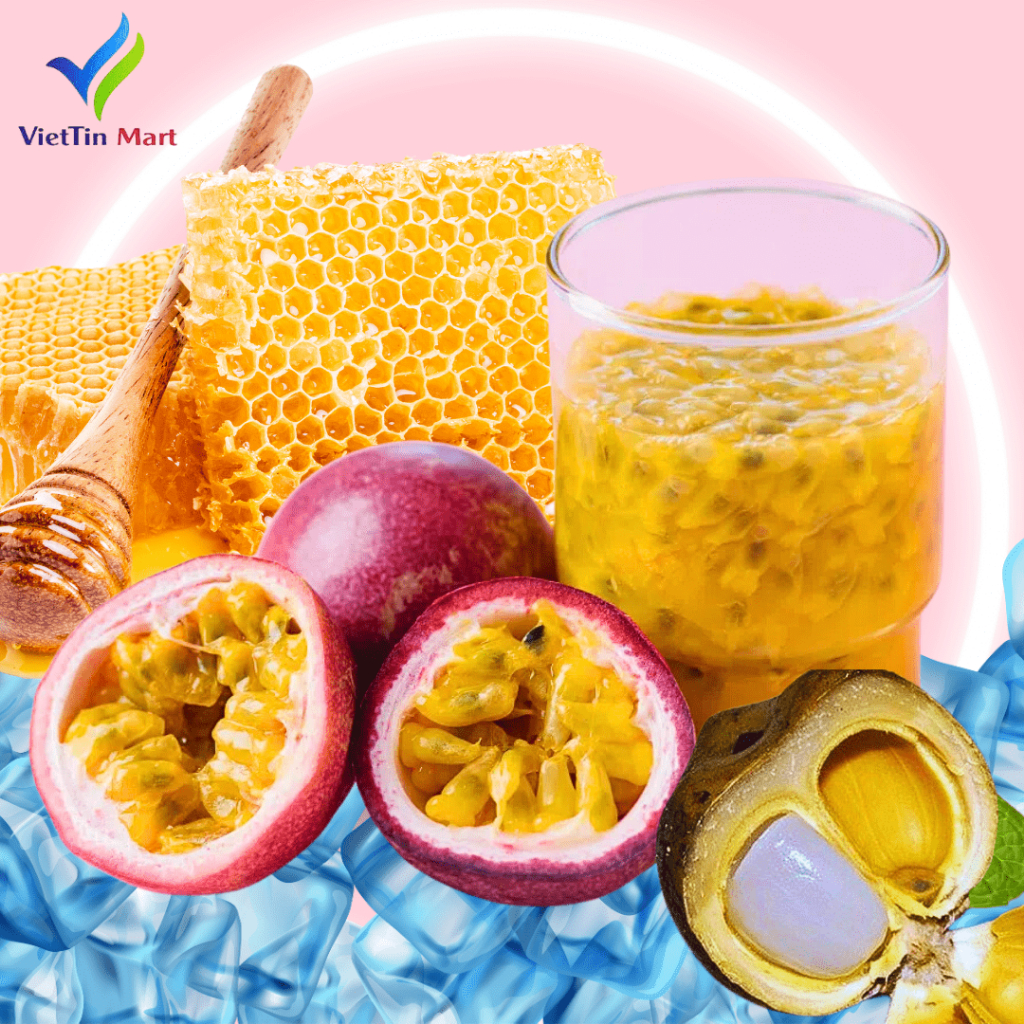 Màu vàng cam đặc trưng của chanh dây mật ong và màu trắng của hạt đác.