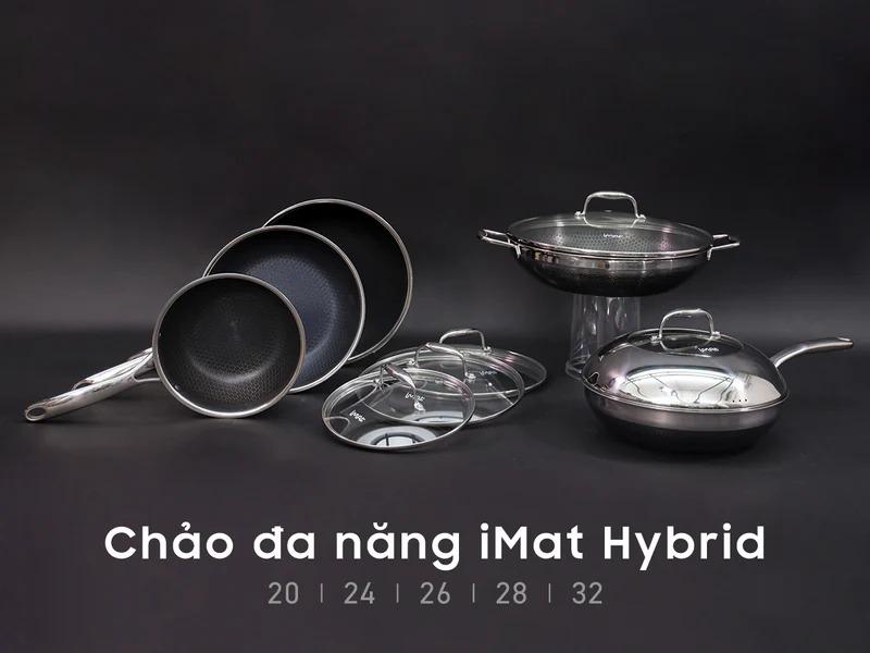Chảo đa năng iMat Hybrid là sự kết hợp giữa chất liệu inox và bề mặt chống dính ứng dụng công nghệ Blackcube, chứa các trụ inox trồi cao giúp dẫn nhiệt tốt đến thực phẩm. Chảo đa năng iMat Hybrid cho phép bạn chế biến các món ăn có hương vị thơm ngon hảo hạng, đồng thời có thể thoải mái sử dụng các dụng cụ nấu bằng kim loại không lo trầy xước.