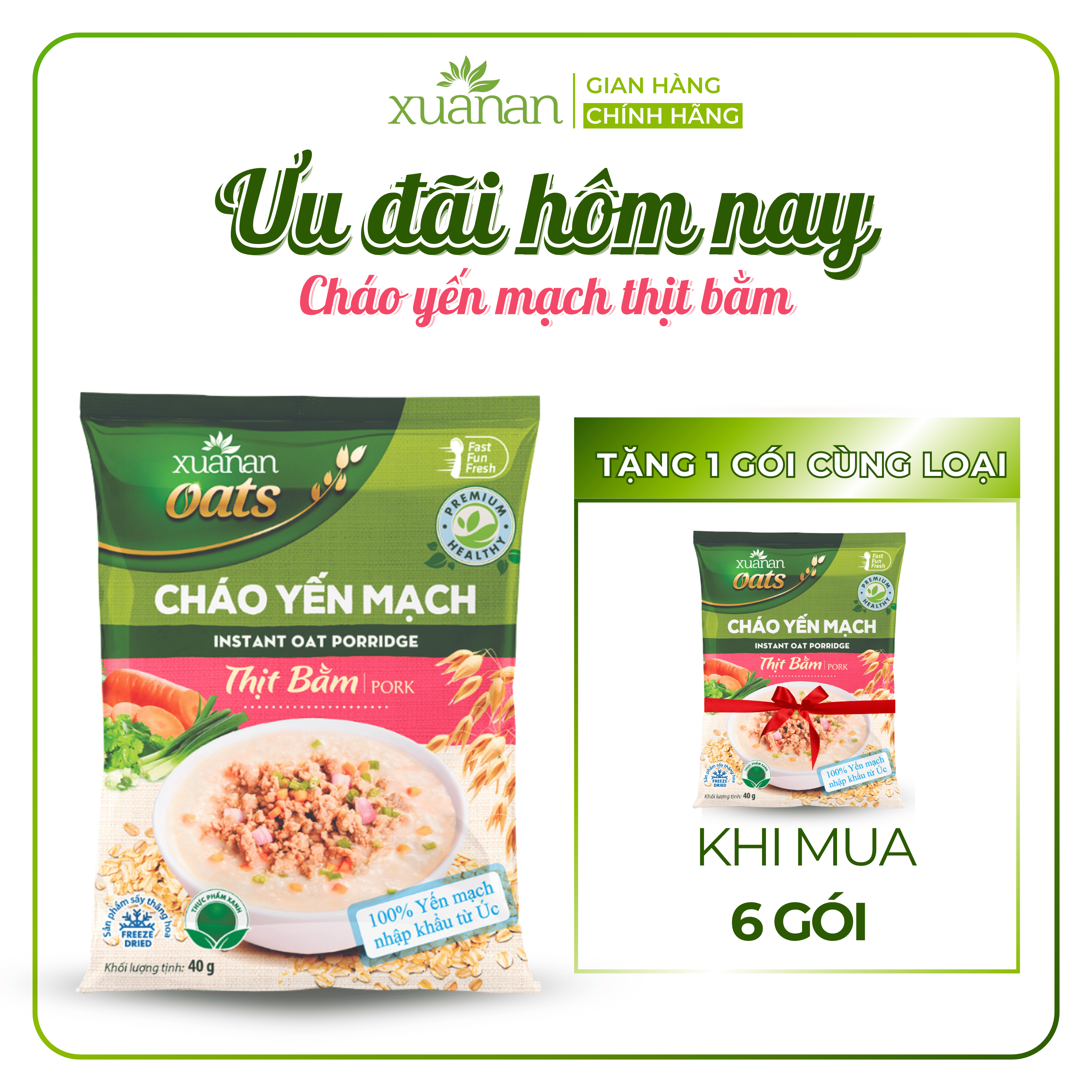 Thông số kỹ thuật Cháo Yến Mạch Thịt Heo Bằm Xuân An Gói 40G (Mua 6 Gói Tặng Kèm 1 Gói )