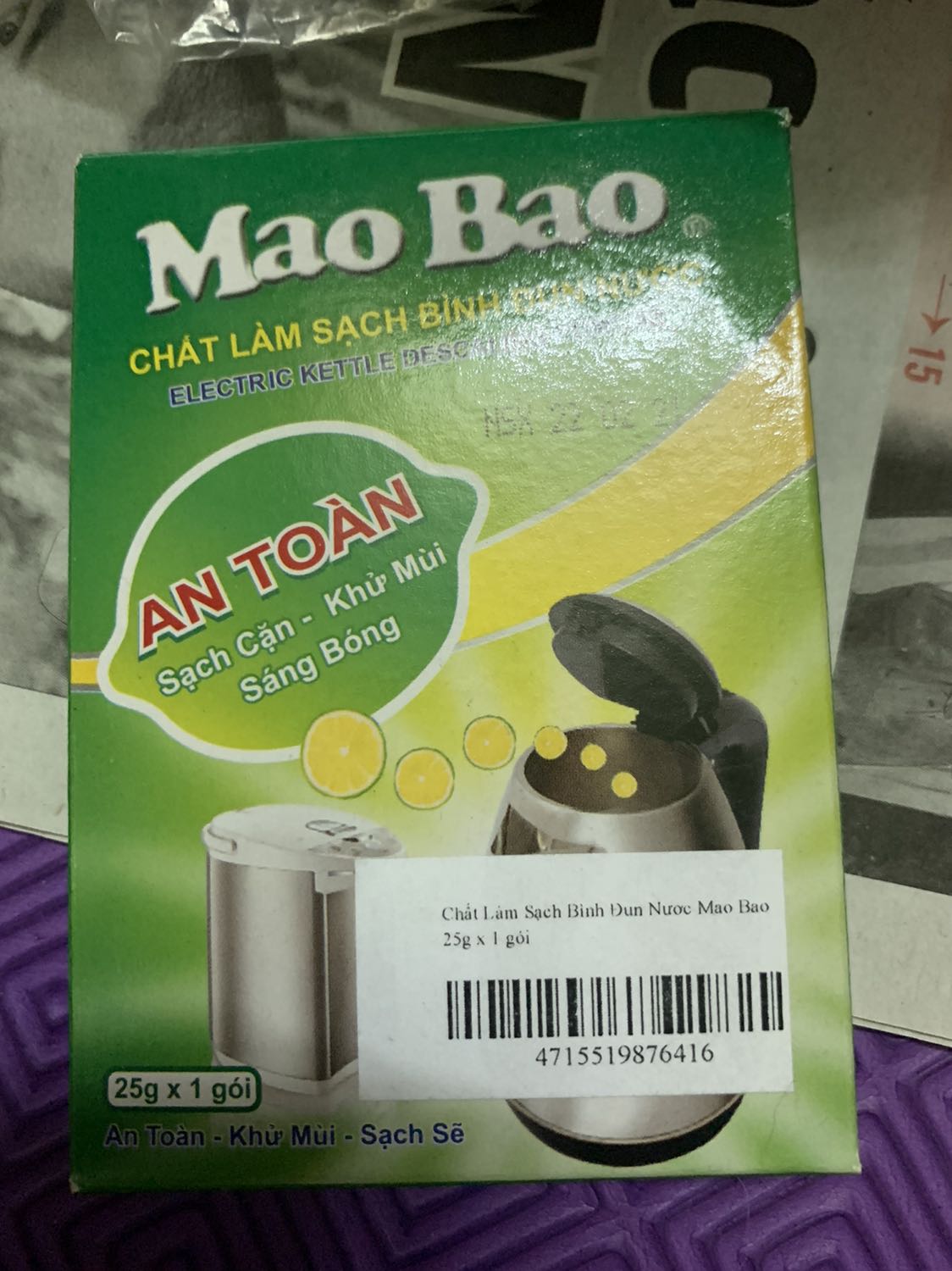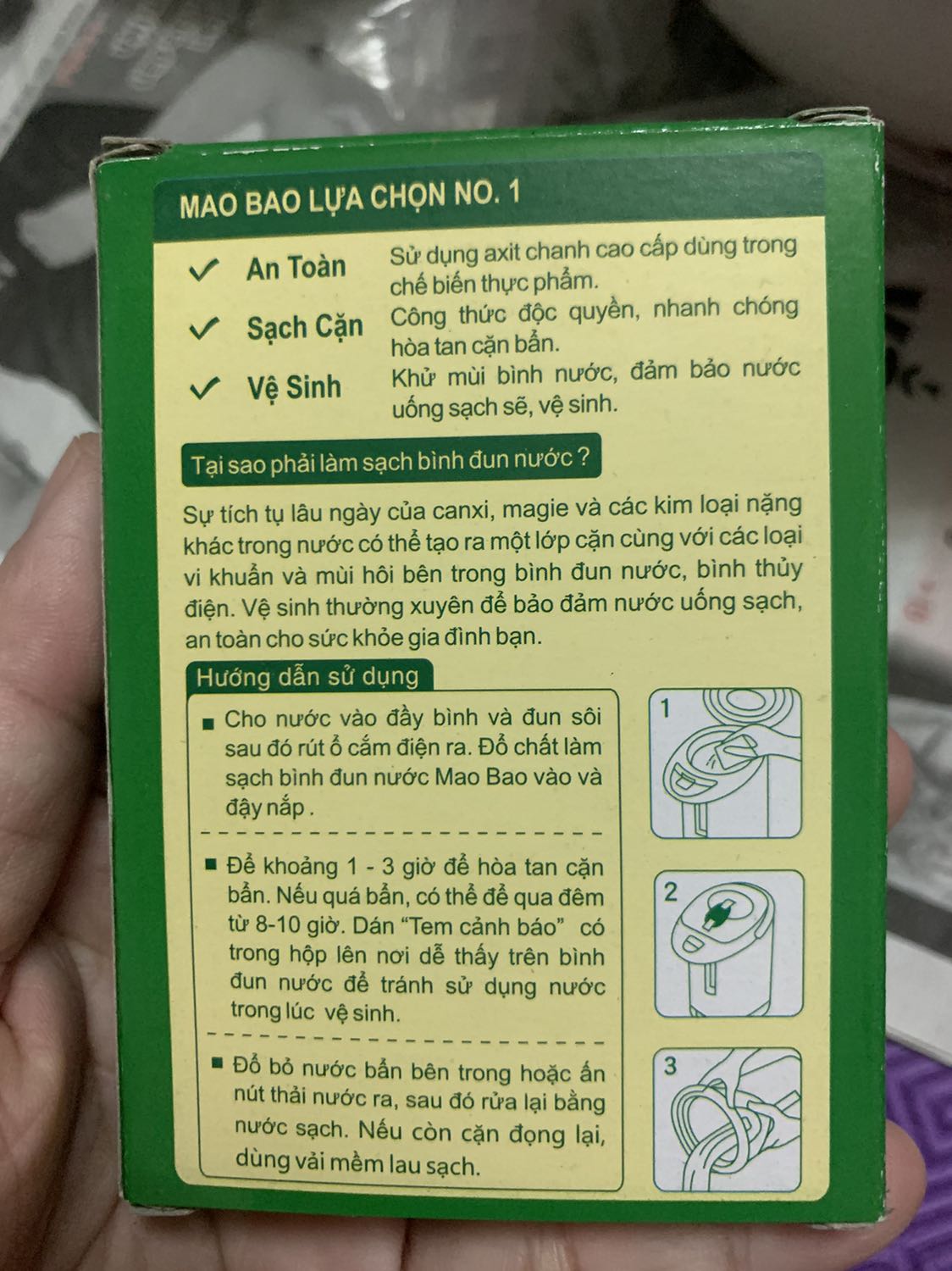 - Chất Làm Sạch Bình Đun Nước Mao Bao 25g x 1 gói làm sạch hiệu quả, vô cùng tiện dụng.