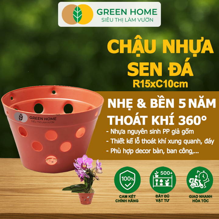Thông số kỹ thuật Chậu Trồng Lan Greenhome, R15xC10cm, Nhựa Màu Gốm, Bền, Đẹp, Chống Rơi Vỡ, Thoáng Rễ, Giá Thành Tốt