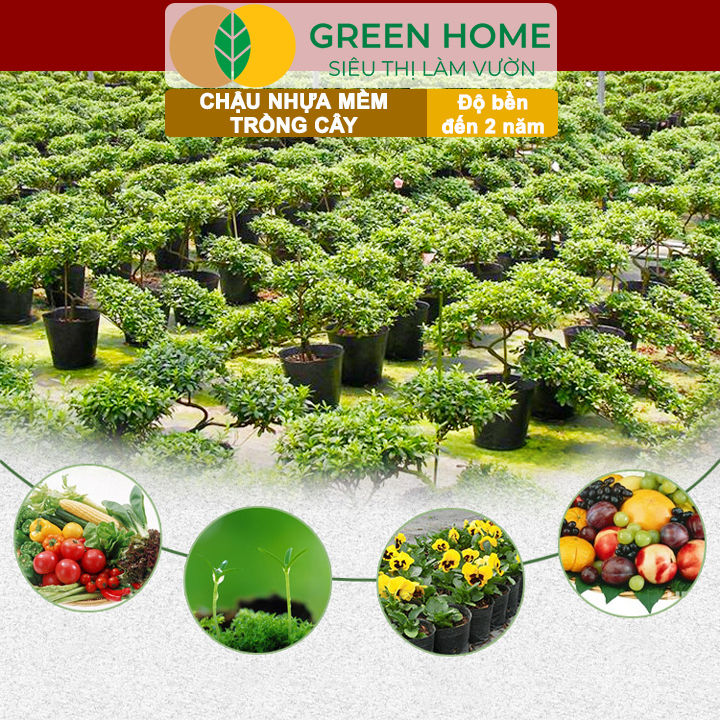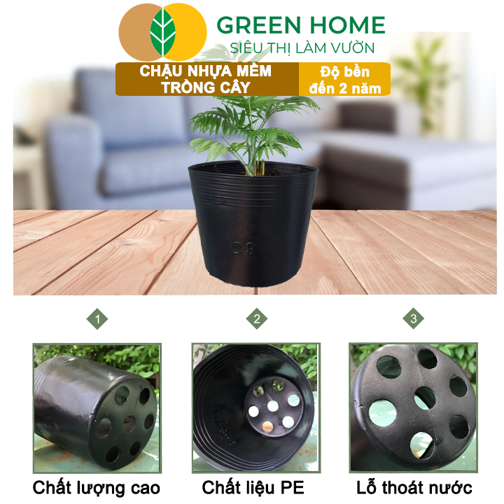 Thông số kỹ thuật Chậu Trồng Cây Greenhome, nhiều kích thước, Nhựa Mềm, Dẻo, Nhẹ, Trồng Cây, Bầu Ươm Cây Giống, Độ Bền Đến 2 Năm