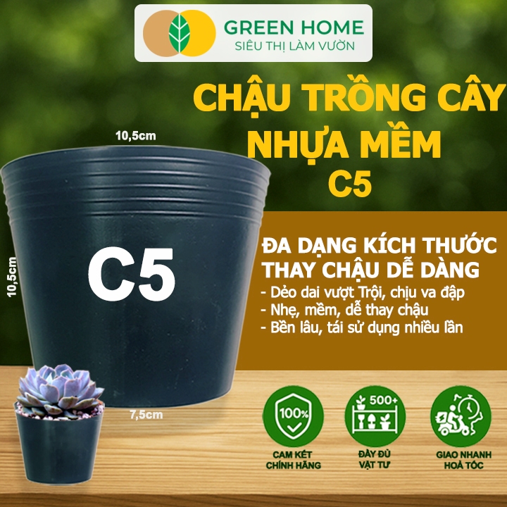 Chậu Nhựa Trồng Cây Greenhome, C5 (10,5x10,5x7,5cm), Nhựa Mềm, Dẻo, Nhẹ, Trồng Cây, Bầu Ươm Cây Giống, Độ Bền Đến 2 Năm