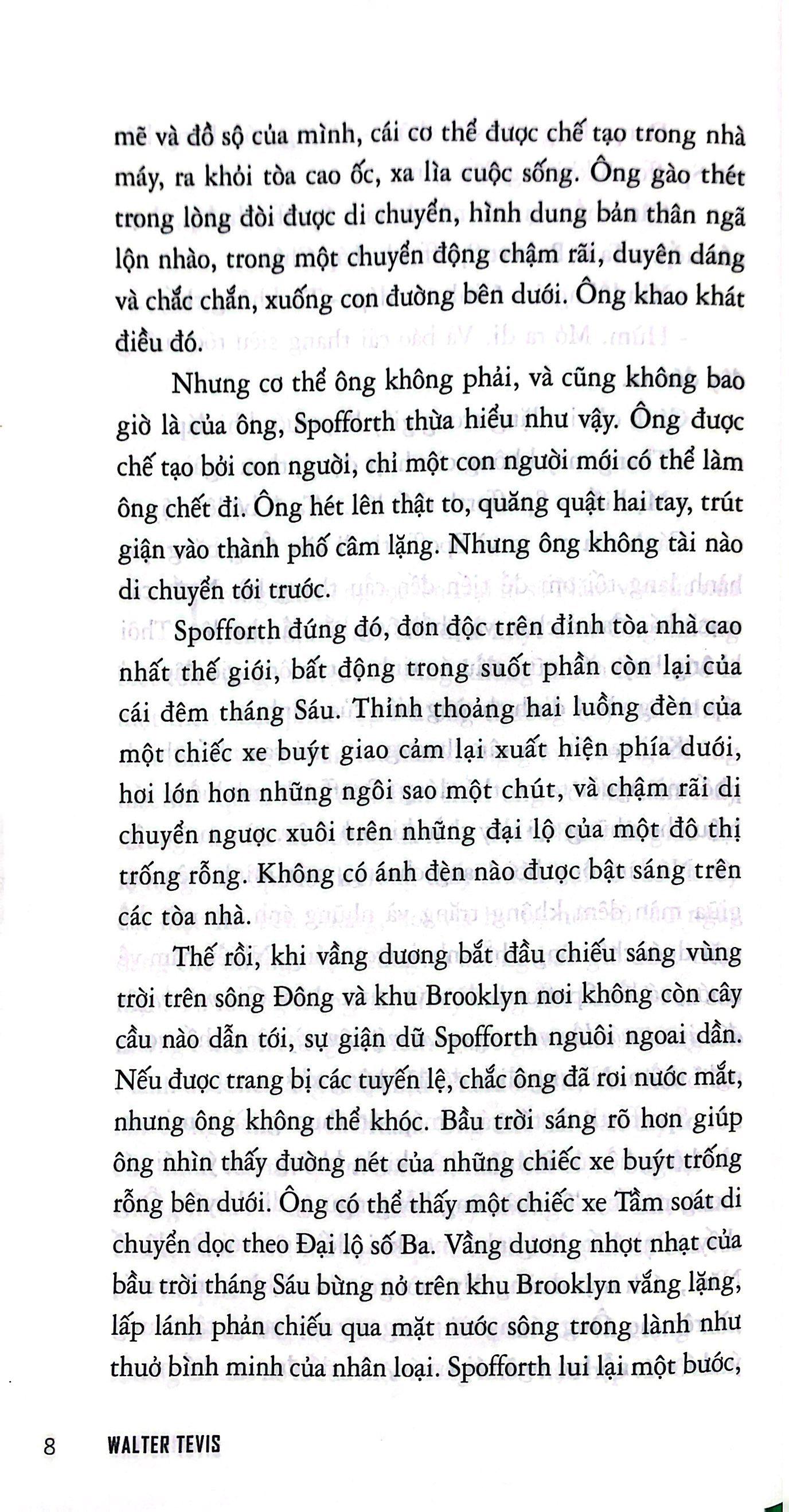Tác giả Walter Tevis (1928-1984): Tiểu thuyết gia và nhà viết truyện ngắn nổi tiếng người Mĩ. Ông dành phần lớn cuộc đời giảng dạy tại Đại học Ohio trước khi chuyển đến New York để trở thành nhà văn toàn thời gian. Ba tiểu thuyết của ông được dựng thành phim điện ảnh và đoạt nhiều giải thưởng là Kẻ lừa đảo, Màu tiền và Hạ phàm.