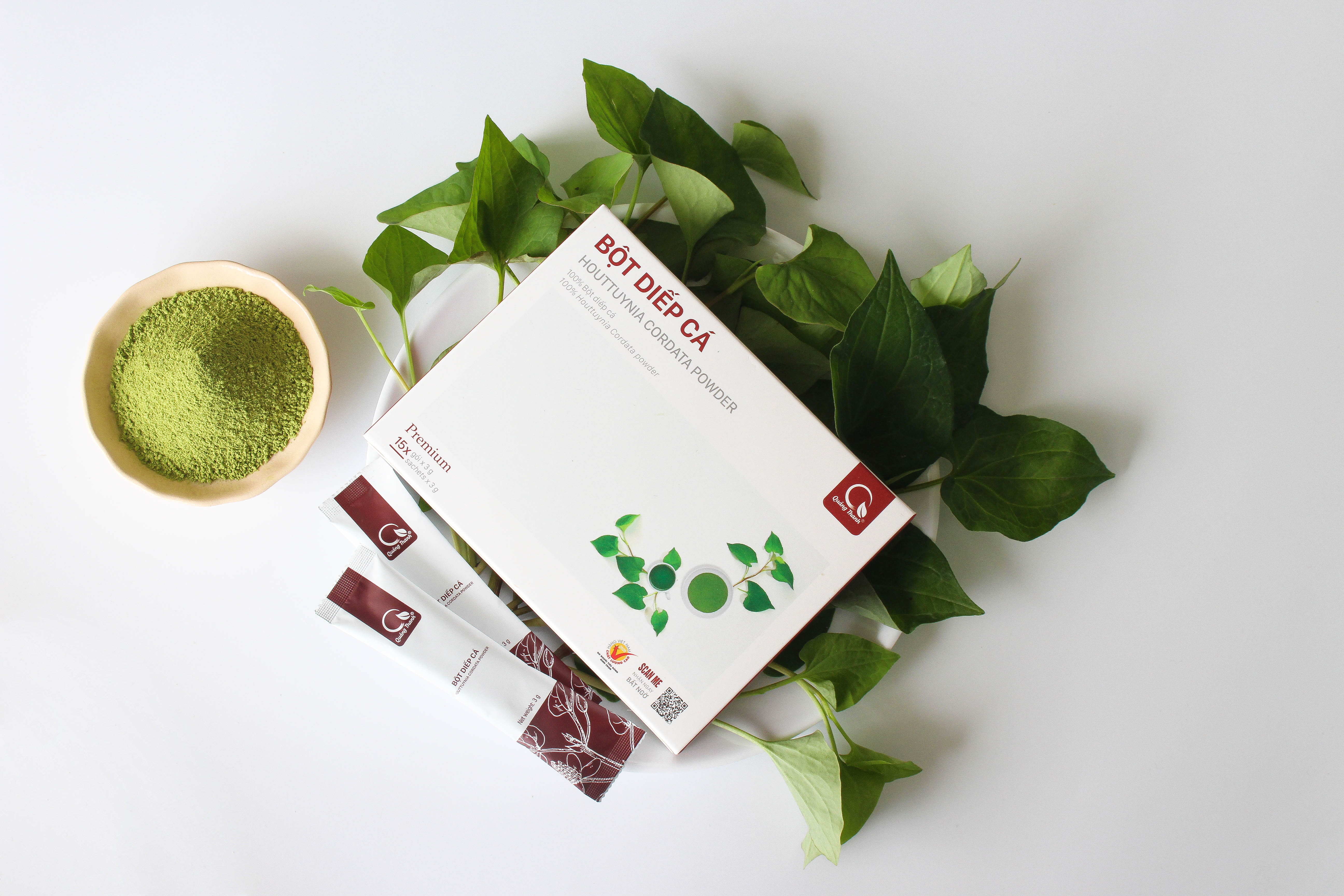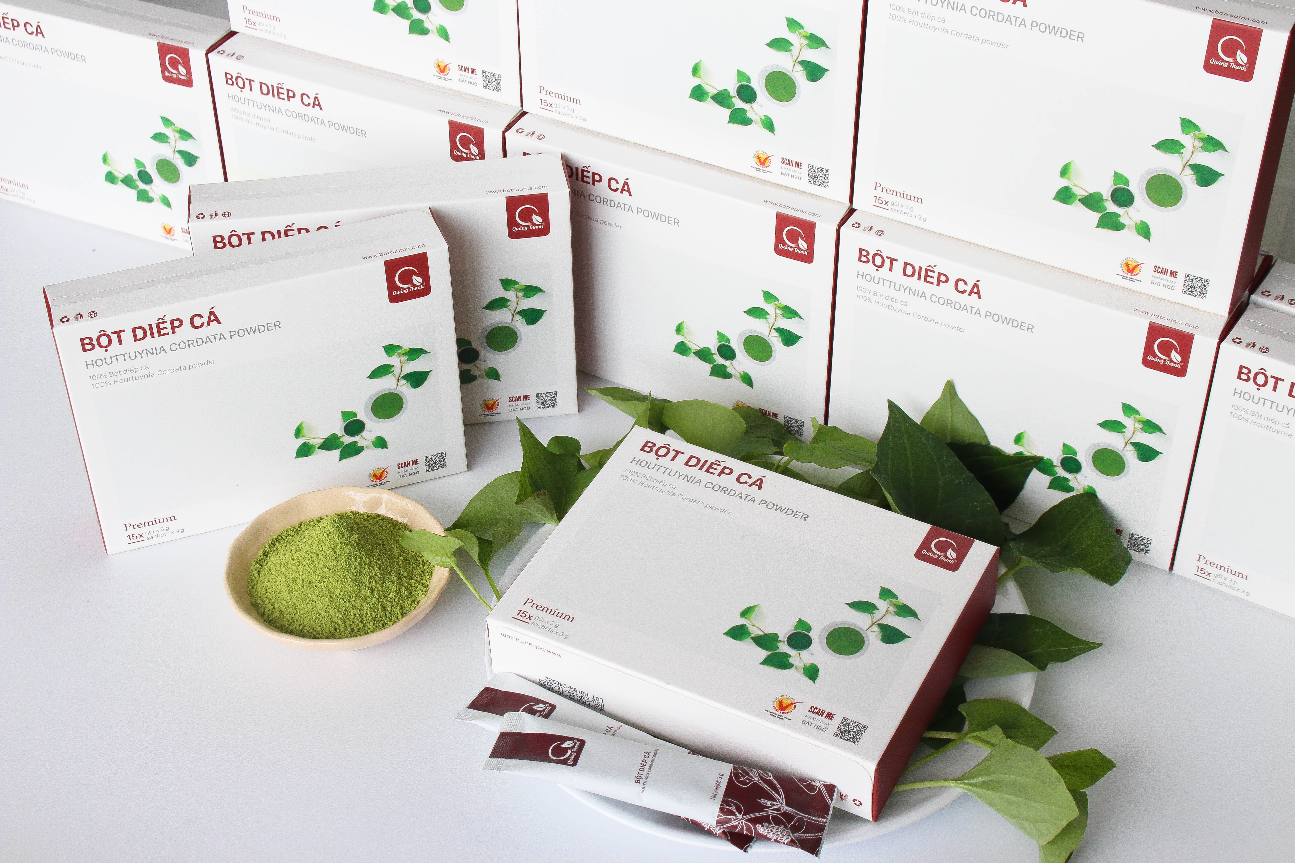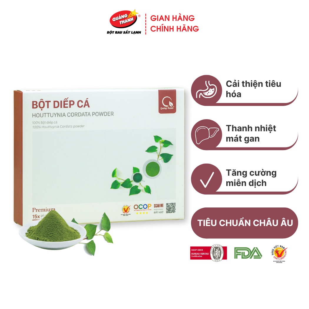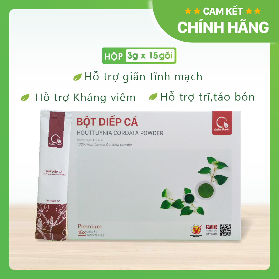 Bột Diếp Cá Quảng Thanh dùng thay thế diếp cá tươi, hỗ trợ trị trĩ, táo bón, giải độc gan, kháng viêm, tăng cường tiết sữa,