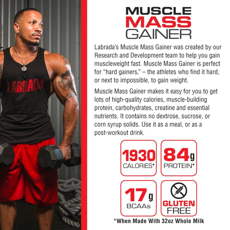 Muscle Mass Gainer được thiết kế bới Labrada , 1 thương hiệu tiên phong trong những nghiên cứu sản xuất các sản phẩm cao cấp nhằm mục tiêu tăng cơ, giảm mỡ đột phá những điều gần như là không thể trong lĩnh vực tăng cân.