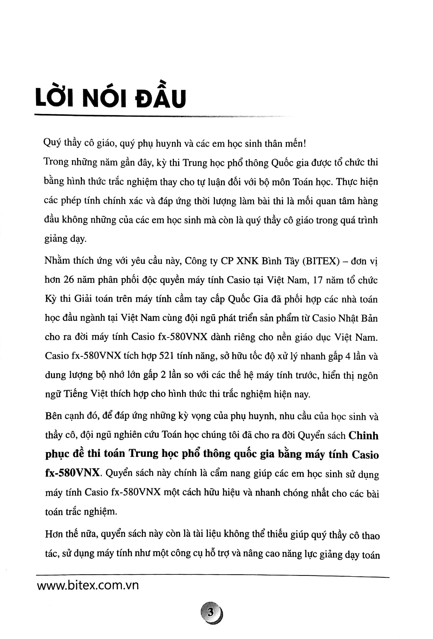 Thông số kỹ thuật Chinh Phục Đề Thi Toán Trung Học Phổ Thông Quốc Gia Bằng Máy Tính Casio fx-580VN X