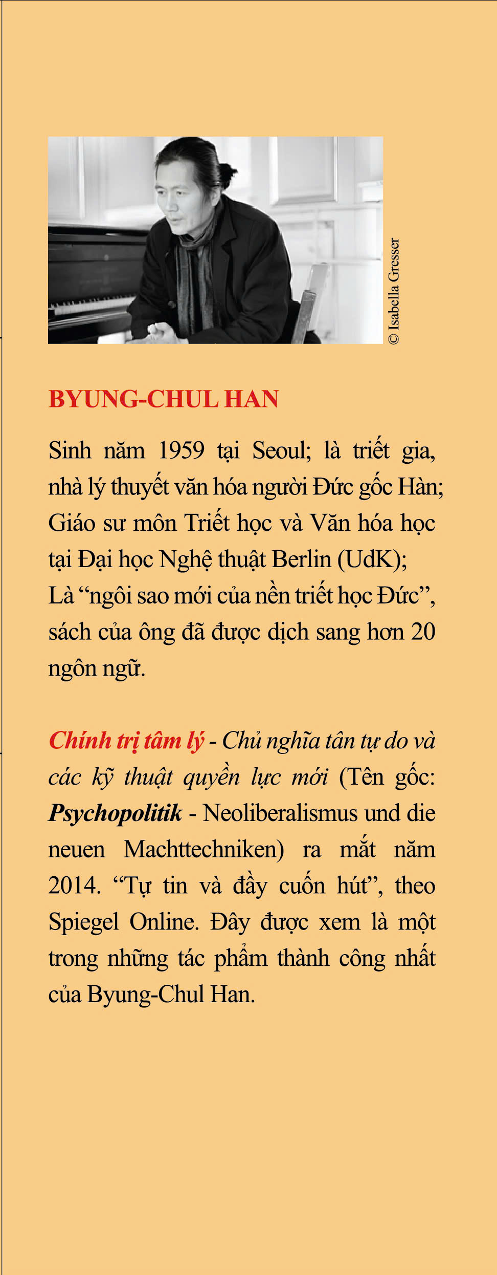 - Chính trị tâm lý - Chủ nghĩa tân tự do và các kỹ thuật quyền lực mới (Tên gốc: Psychopolitik - Neoliberalismus und die neuen Machttechniken) ra mắt năm 2014. “Tự tin và đầy cuốn hút”, theo Spiegel one. Đây được xem là một trong những tác phẩm thành công nhất của Byung-Chul Han.