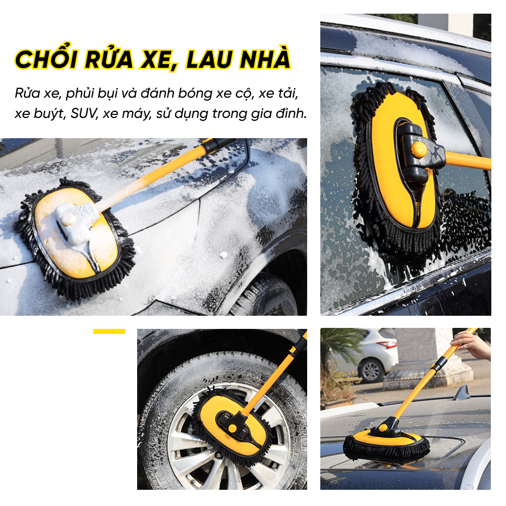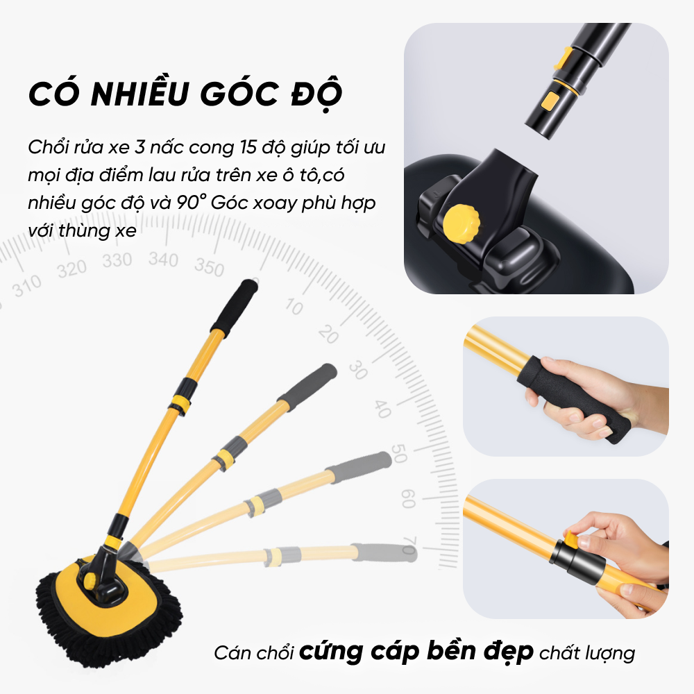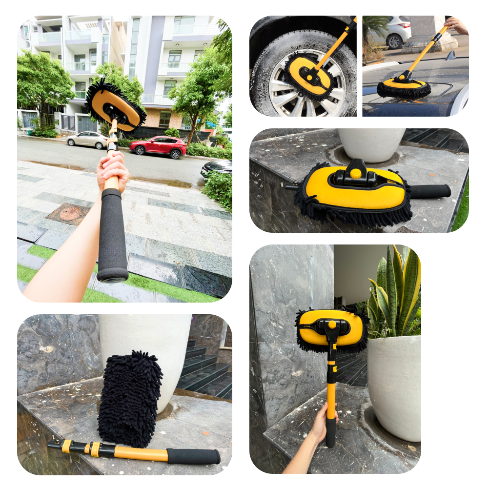 Với khả năng kéo dài linh hoạt, sản phẩm này giúp bạn dễ dàng tiếp cận các vùng khó tiếp cận trên xe của bạn mà không cần phải uốn cong hoặc căng thẳng. Bạn có thể điều chỉnh chiều dài phù hợp với nhu cầu của mình mà không cần phải mang theo nhiều loại chổi khác nhau.