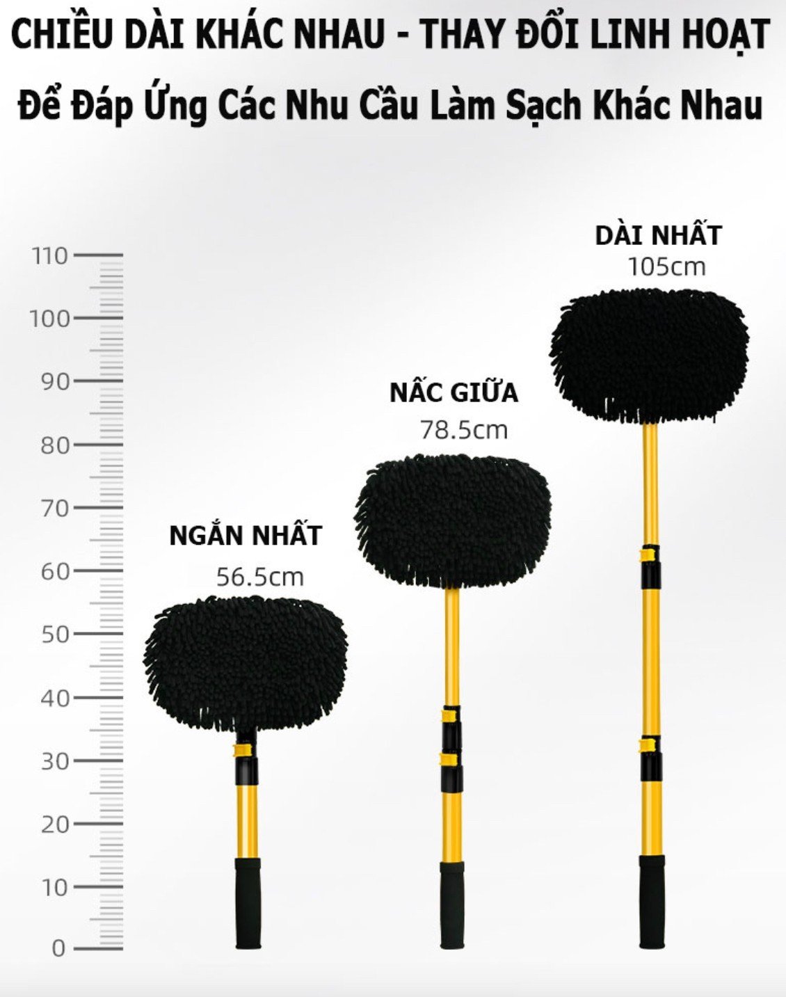 Thông số kỹ thuật Chổi Vệ Sinh Rửa Xe Ô Tô - Cây Lau Nhà Đặc Biệt Dạng Ống Lồng Ba Phần | Dụng Cụ Rửa Xe Làm Sạch Bằng Sợi Chenille
